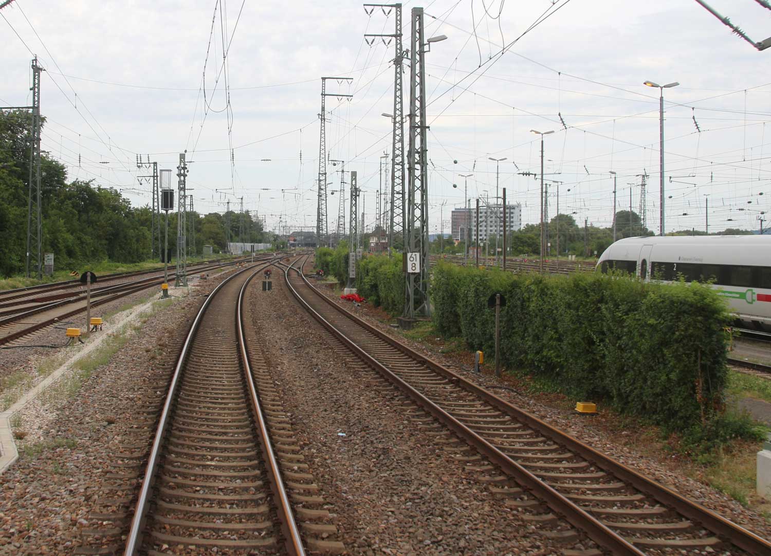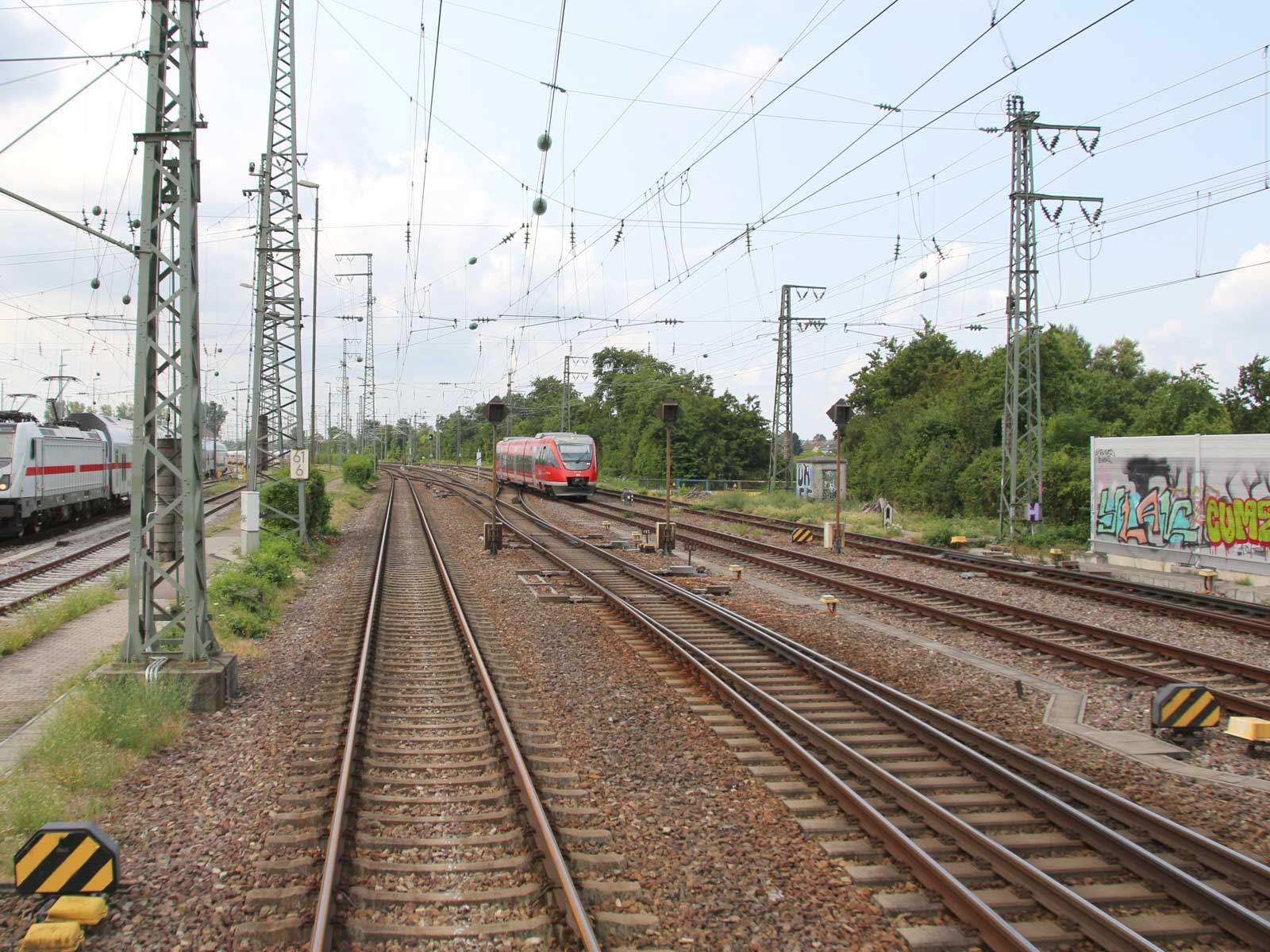 Rastatt 82,93 km 96,50 der Strecke Mannheim Hbf 0,0 - Heidelberg Hbf (alt) 18,2 (neu) 17,4 = 19,1 - Karlsruhe Hbf 72,90 - Basel Bad. Bf 270,69 - Singen (Hoh) 384,08 - Konstanz 414,34 - Staatsgrenze 414,83