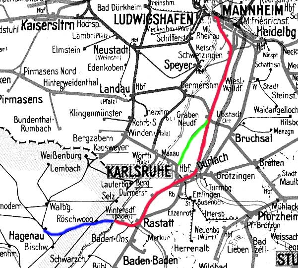 Karlsruhe Pbf 0,0 - Rastatt 20,77 - Wintersdorf (Baden) 28,00 - Grenze Deutschland/Frankreich - Haguenau [Hagenau (Els)]