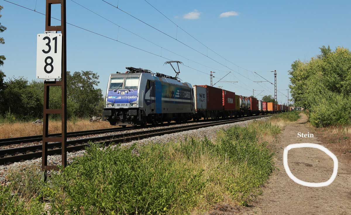 km 96,6 (Stein links) und km 96,7 (Stein Mitte) gehören zur Strecke