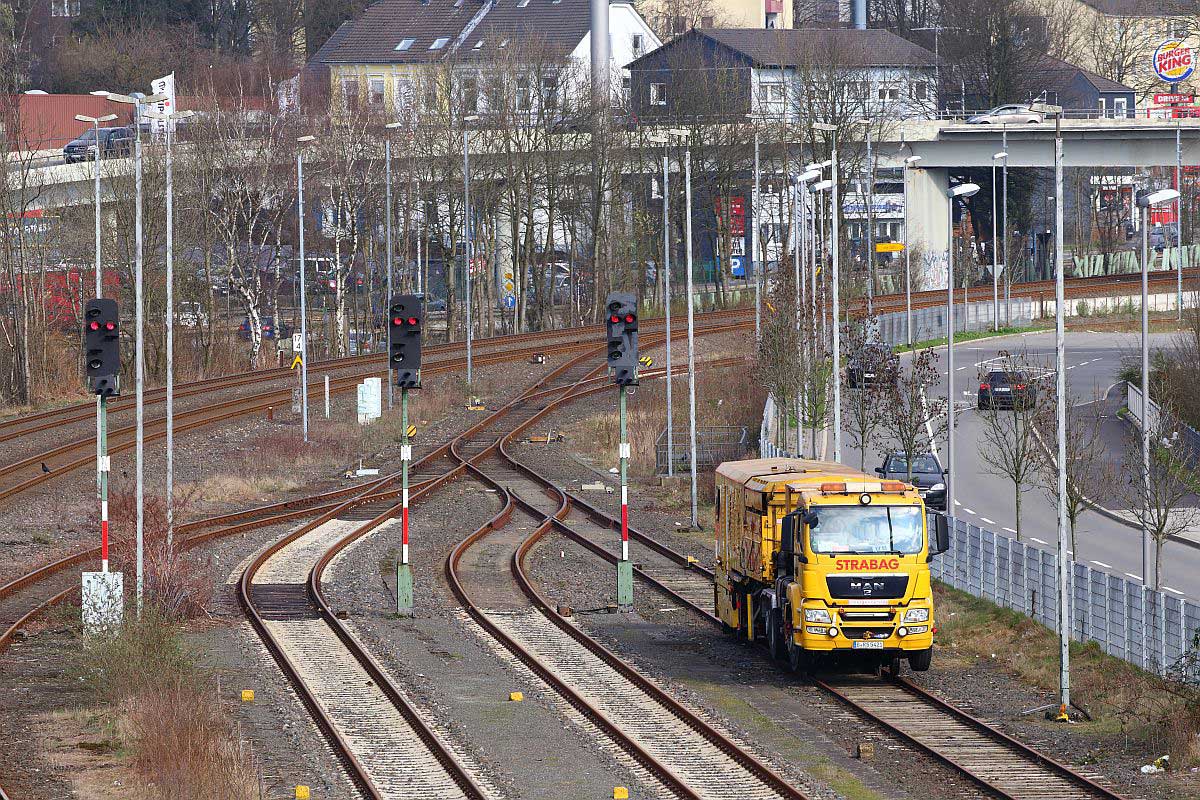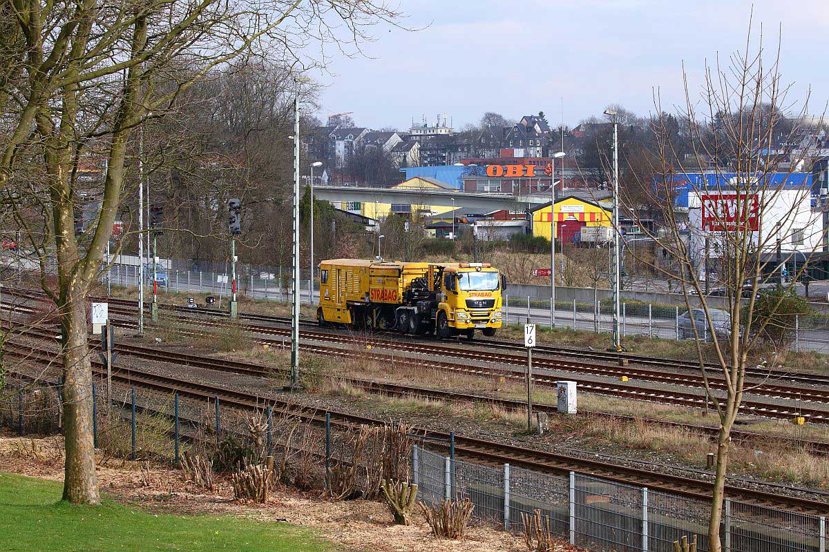 km 17,4 (Stein und Tafel) in Remscheid Hbf - Zweiwege-Schienenfräsmaschine SF02 W-FS Truck