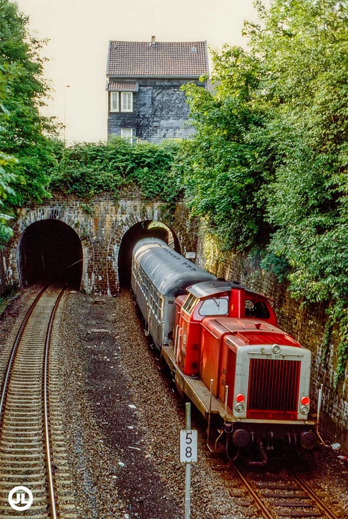 km 5,8 an den Südostportalen der Weyersberger Tunnel - Blick Richtung Solingen-Ohlings (heute: Solingen Hbf)