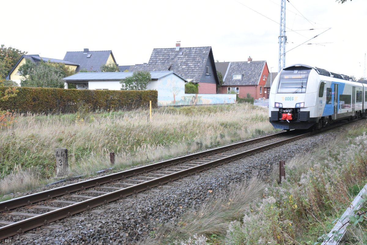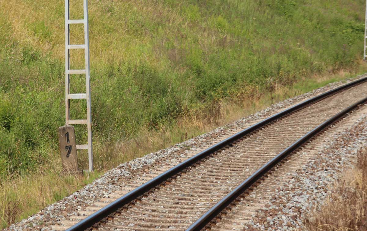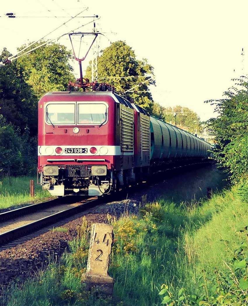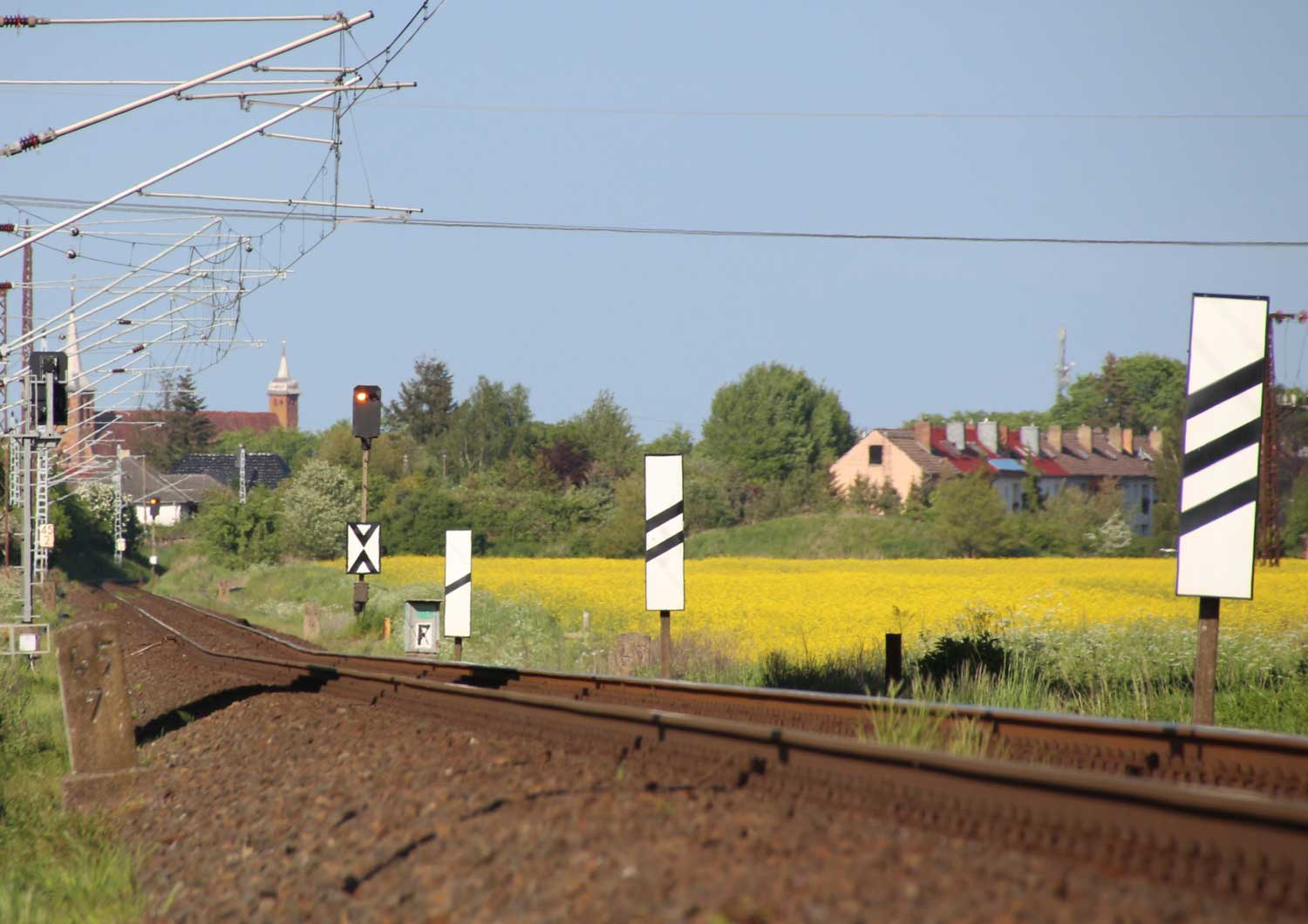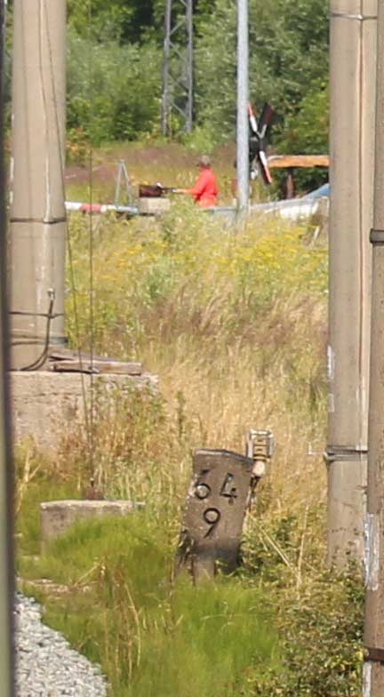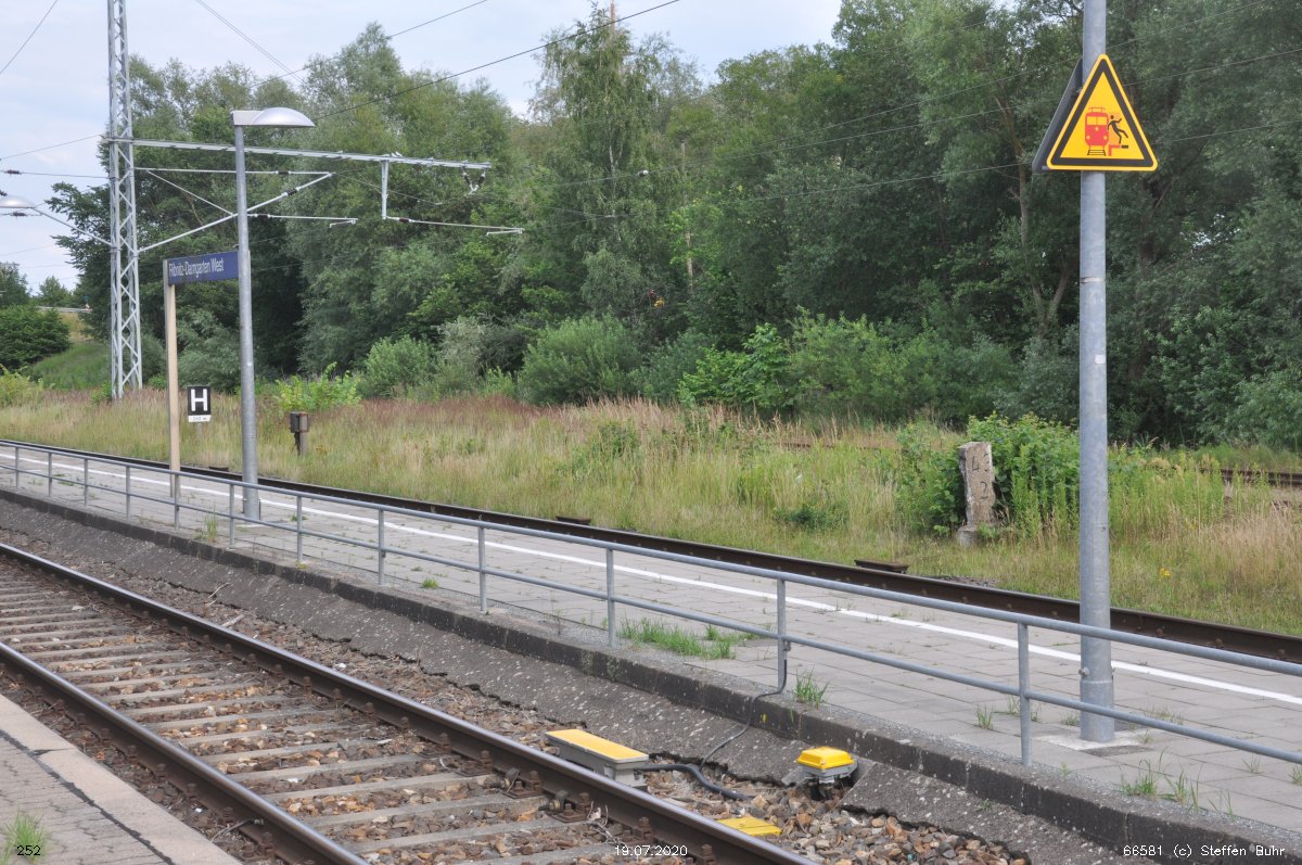 km 1,2 (Tafel und Stein) gehört zur Strecke Abzw Riekdahl, W 1 km 0,87 - Rostock Seehafen Nord km 9,228 (6443)
