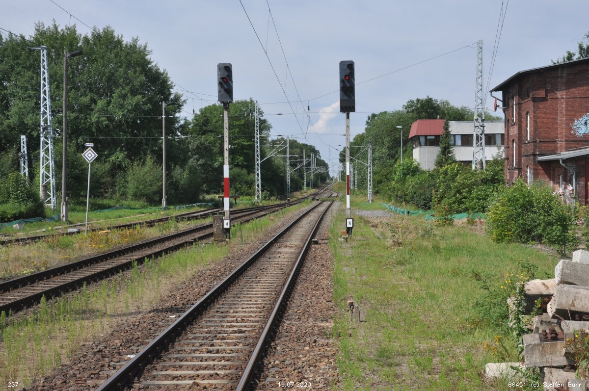 km 1,9 gehört zur Strecke Abzw Riekdahl, W 1 km 0,87 - Rostock Seehafen Nord km 9,228 (6443)