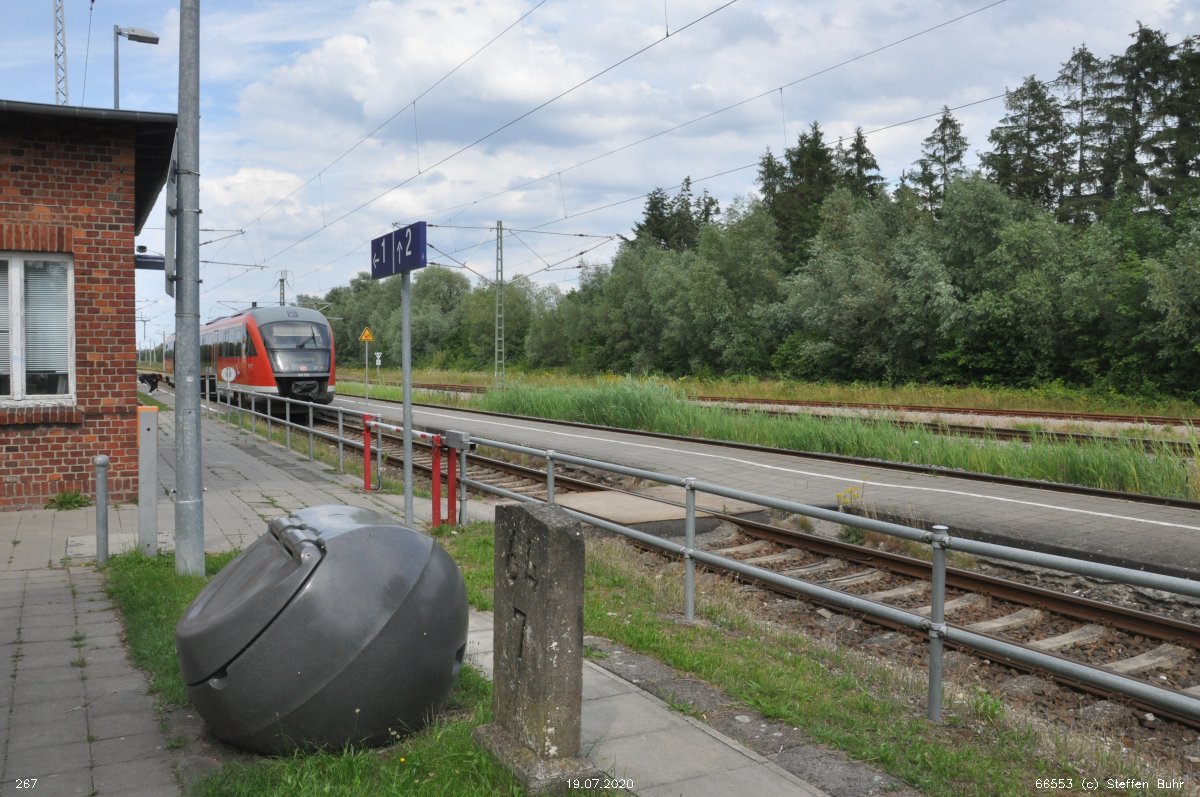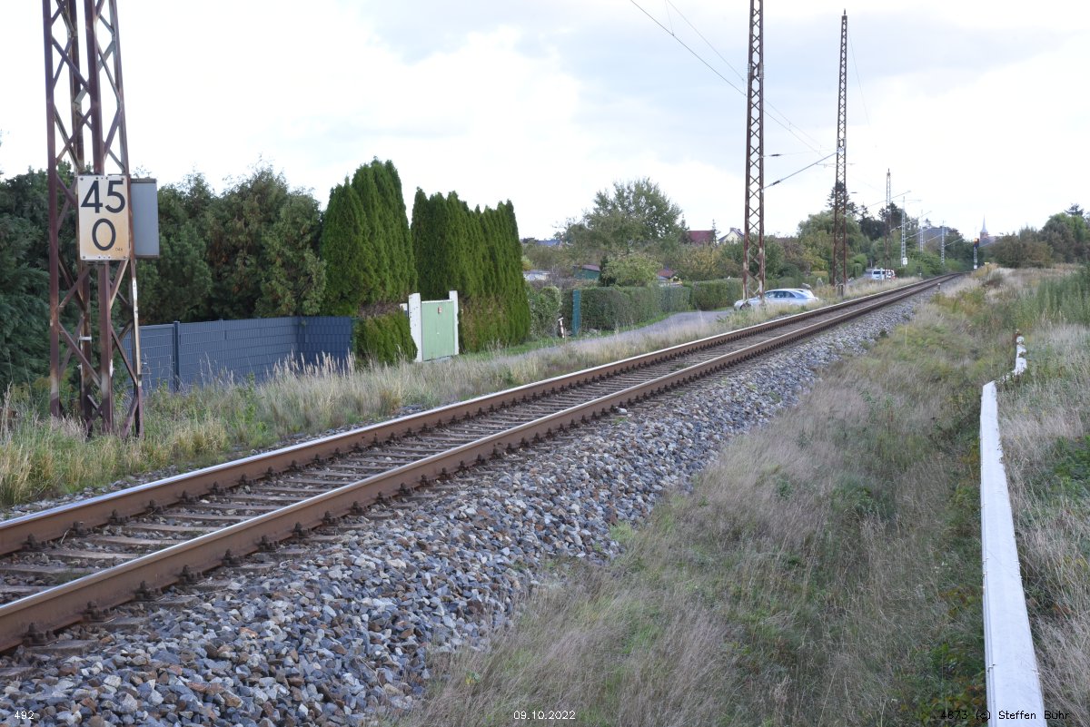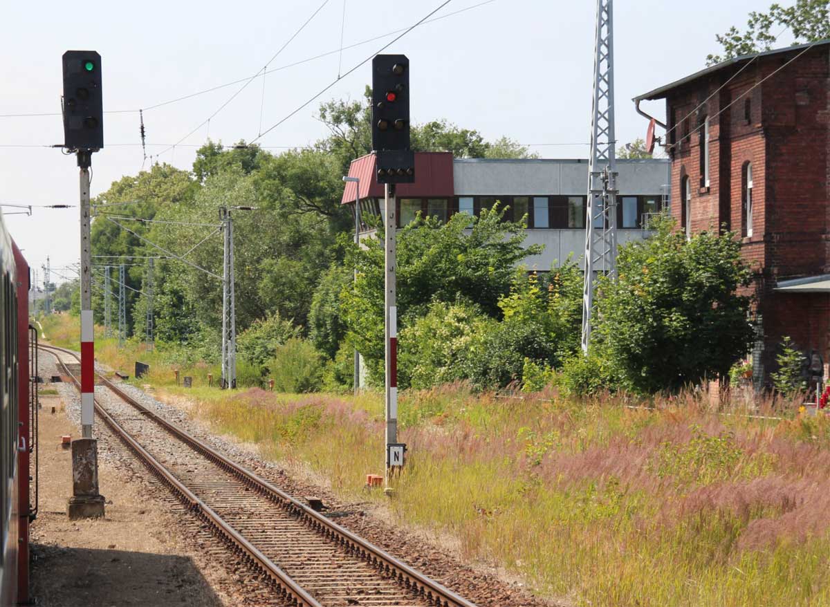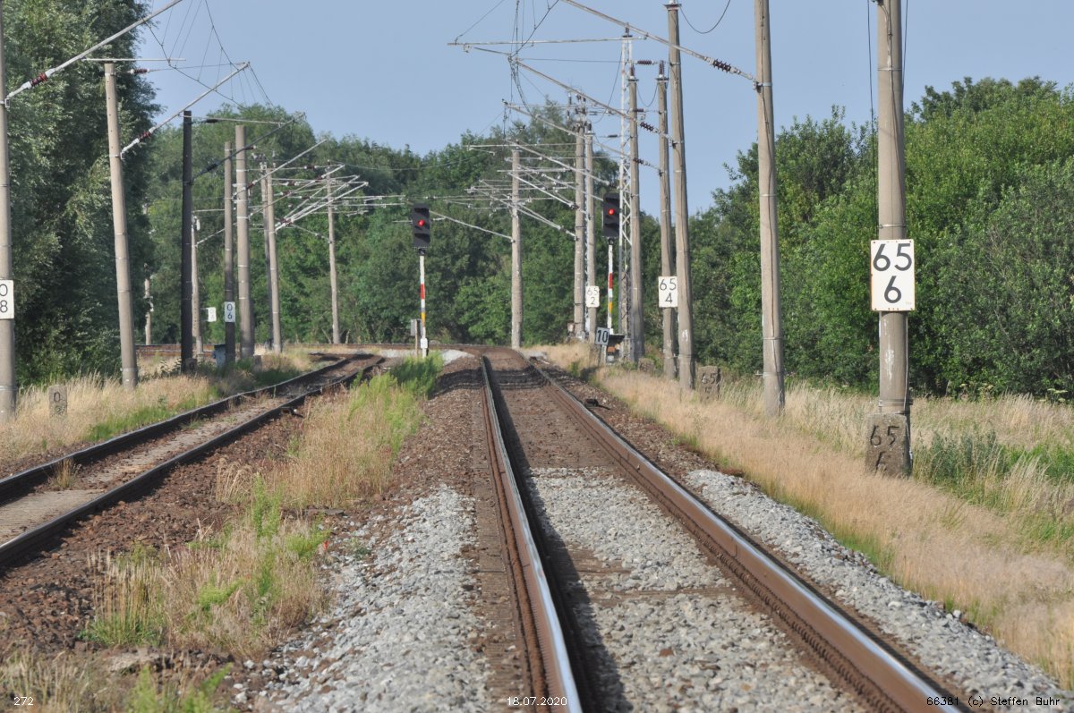 km 223,07 der Strecke Berlin Eberswalder Straße 0,01 - Oranienburg 27,41 - Löwenberg (Mark) 44,25 - Neustrelitz 98,53 -Neubrandenburg 133,69 - Stralsund 222,64 - Saßnitz 272,72 - Saßnitz Hafen 274,46 | ||