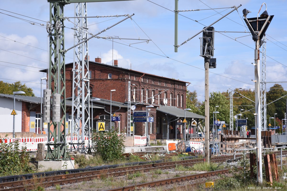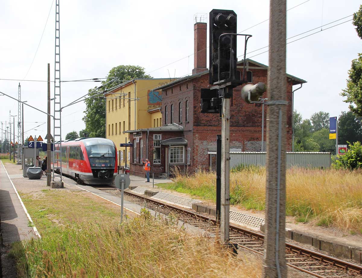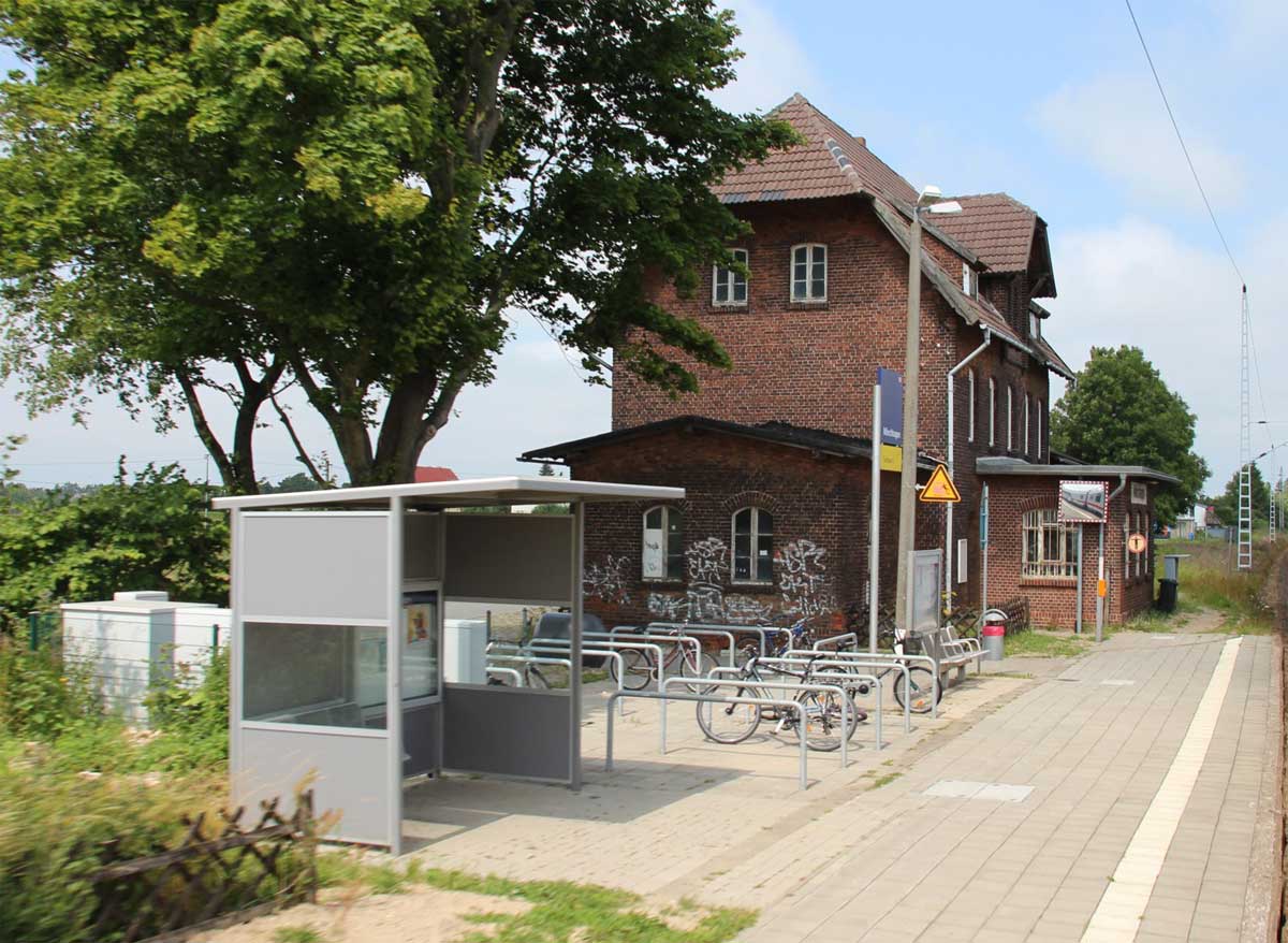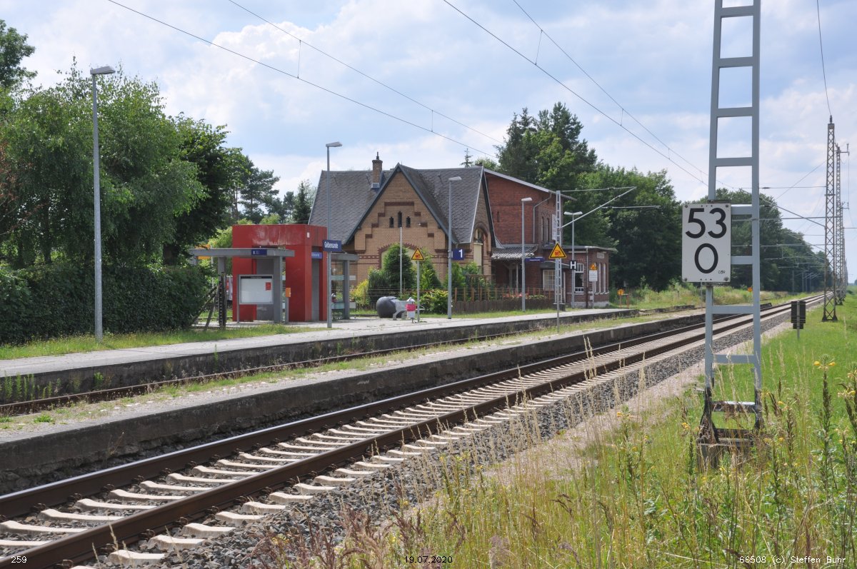 km 223,07 der Strecke Berlin Eberswalder Straße 0,01 - Oranienburg 27,41 - Löwenberg (Mark) 44,25 - Neustrelitz 98,53 -Neubrandenburg 133,69 - Stralsund 222,64 - Saßnitz 272,72 - Saßnitz Hafen 274,46 | ||