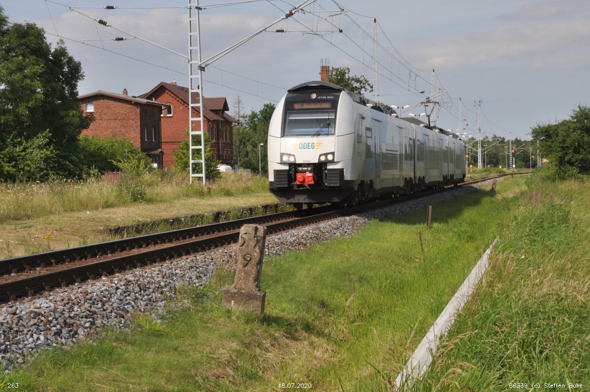 Stralsund 0,30 - Velgast 18,88 - Abzw Warnowbrücke 70,79 - Rostock Hbf 72,64