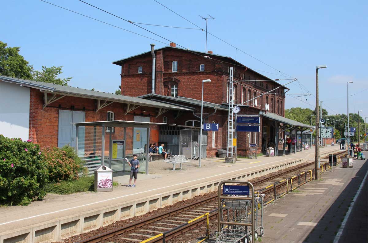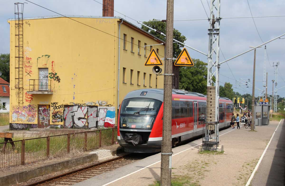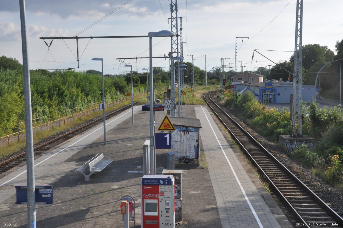 Rostock Hbf | 72,65 | km 113,20 der Strecke Neustrelitz 0,0 - Waren (Müritz) 35,99 - Lalendorf Ost 70,22 - Plaaz 81,49 - Rostock Hbf 113,20 - Warnemünde Hbf 126,30 (auch 126,48) |
