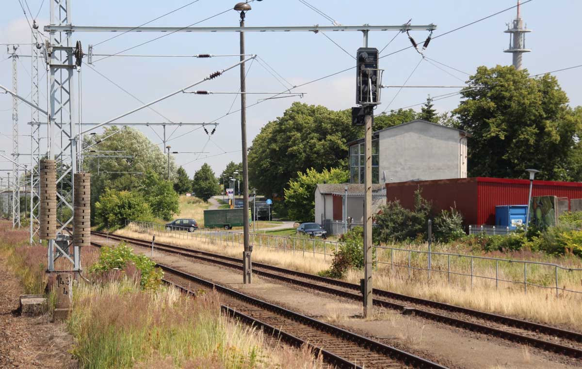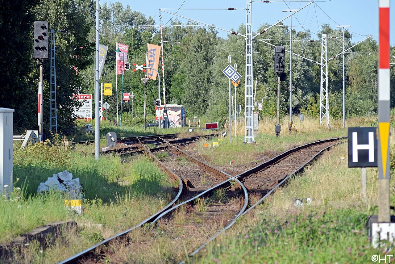 km 1,7 gehört zur Strecke Abzw Riekdahl, W 1 km 0,87 - Rostock Seehafen Nord km 9,228 (6443)
