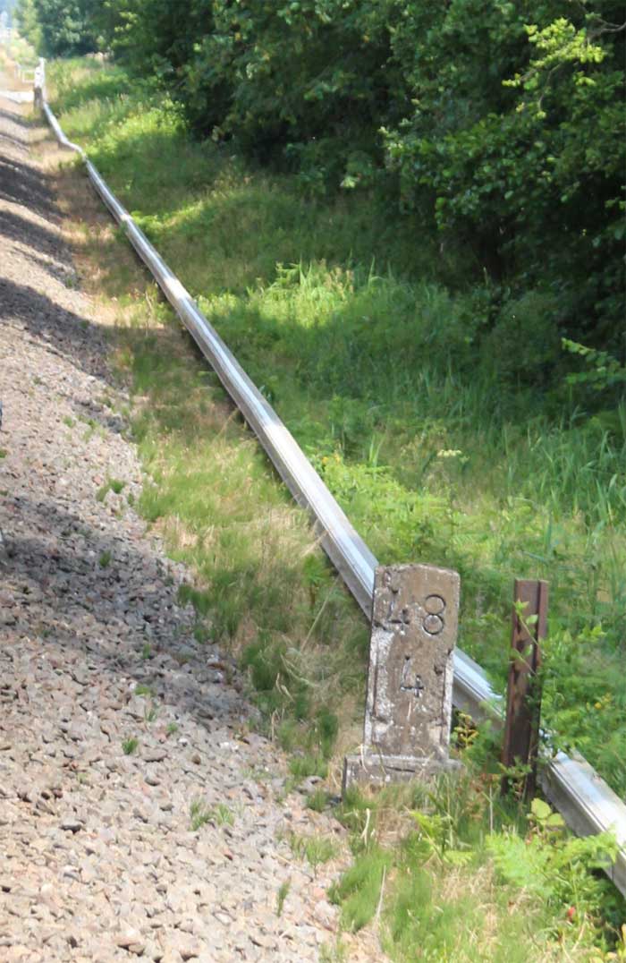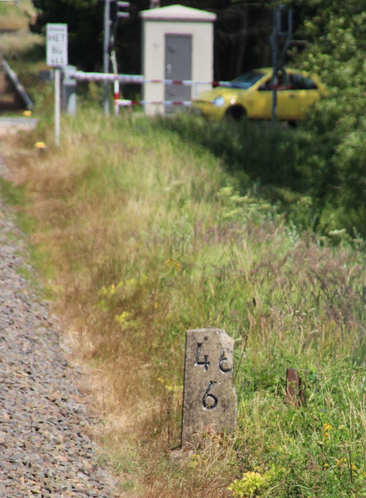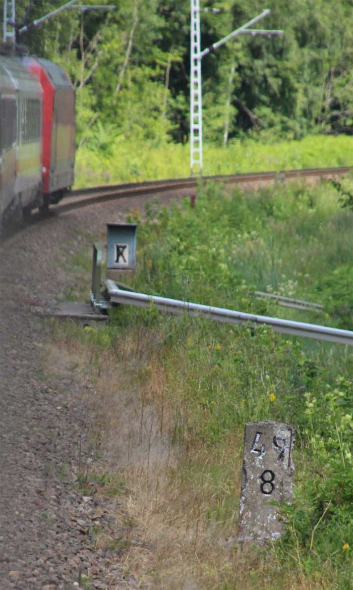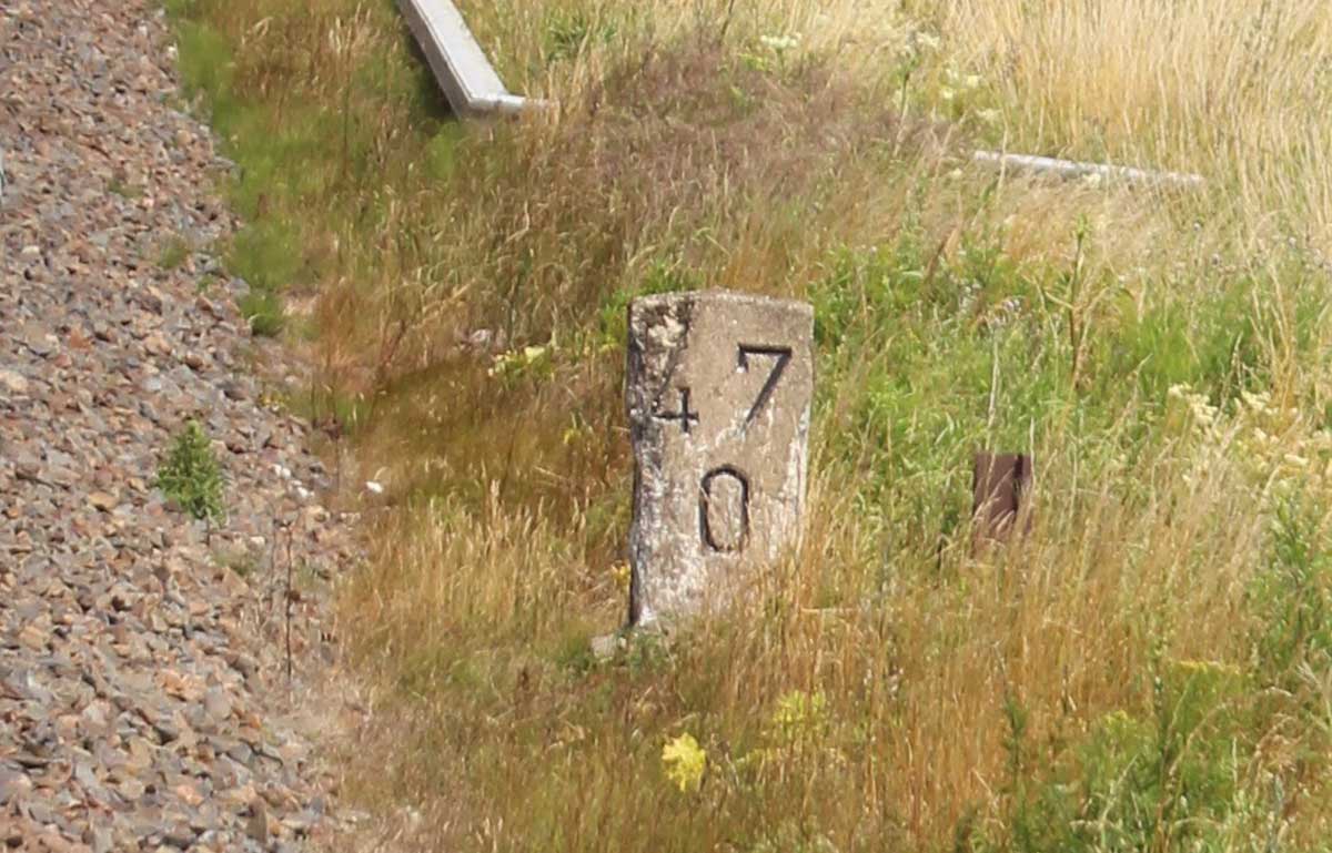 km 0,6 (Tafel) und km 0,7 (Stein) gehören zur Strecke