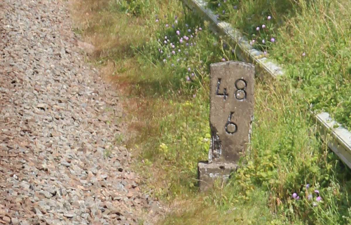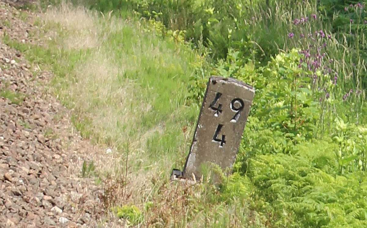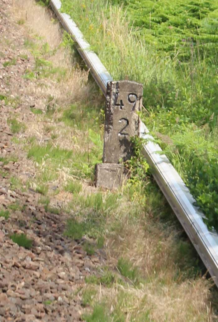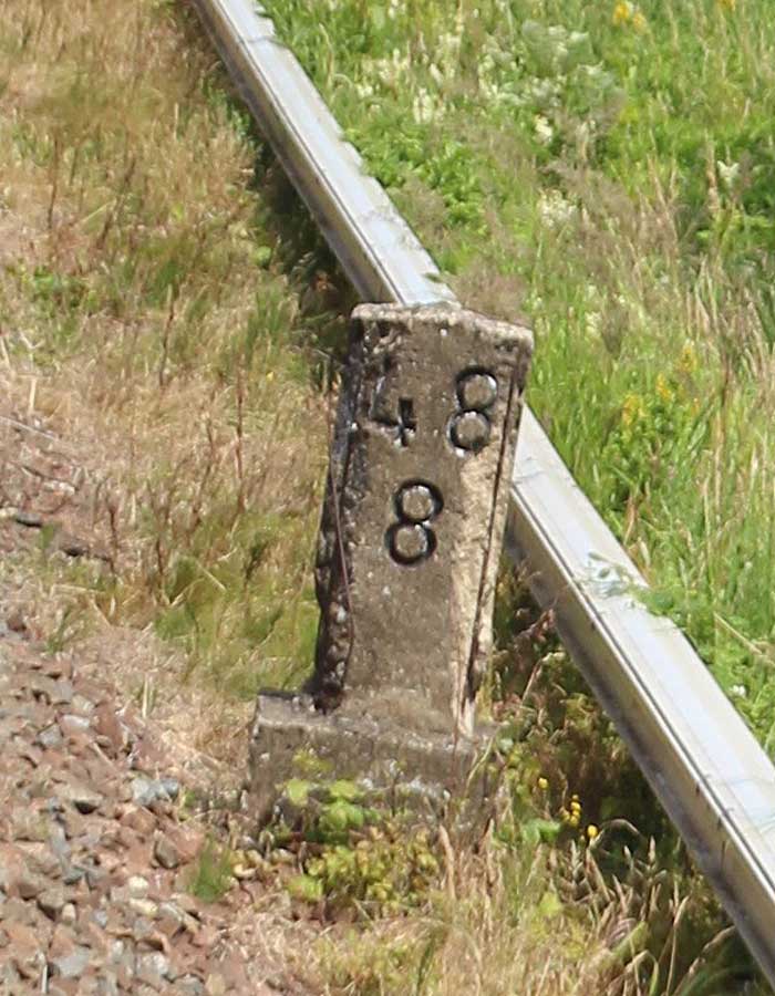 km 0,6 (Tafel) und km 0,7 (Stein) gehören zur Strecke