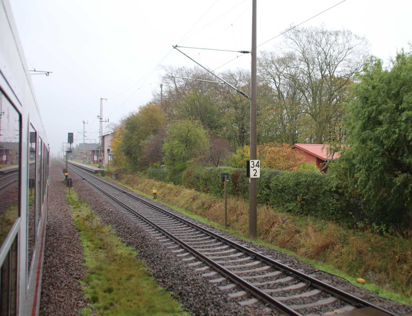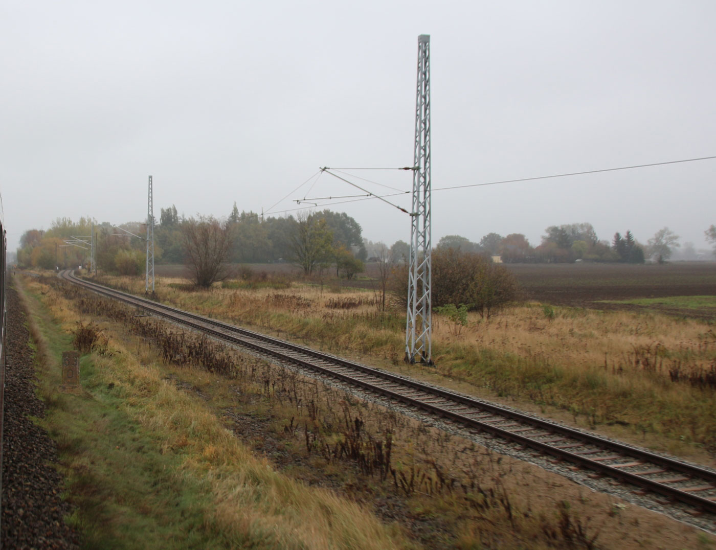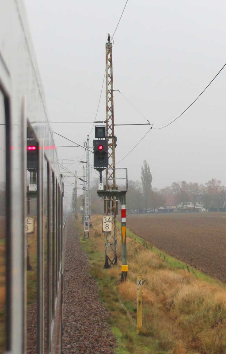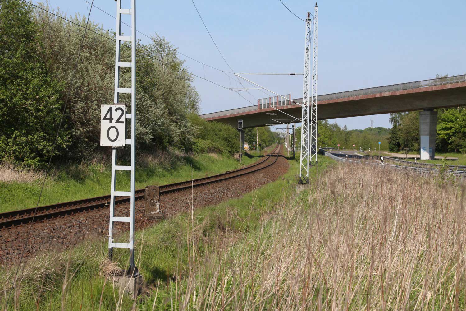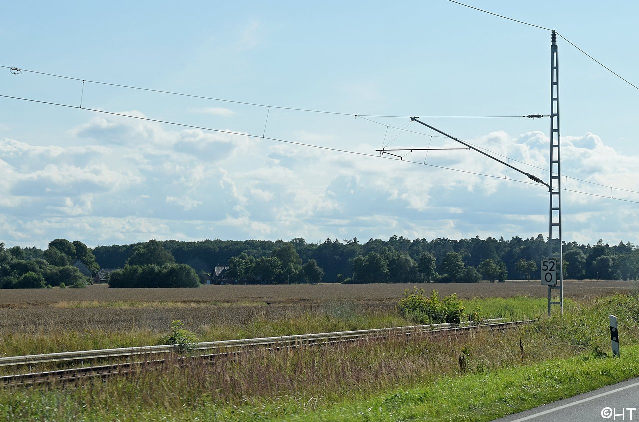 km 70,8 zwischen Rostock-Kassebohm und Abzw Rostock Warnowbrücke West - Blick Richtung Stralsund
