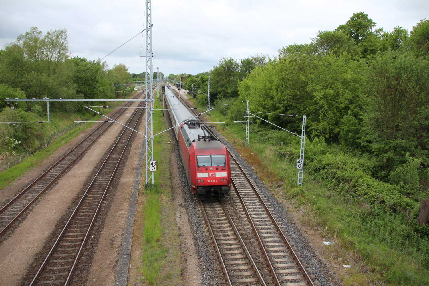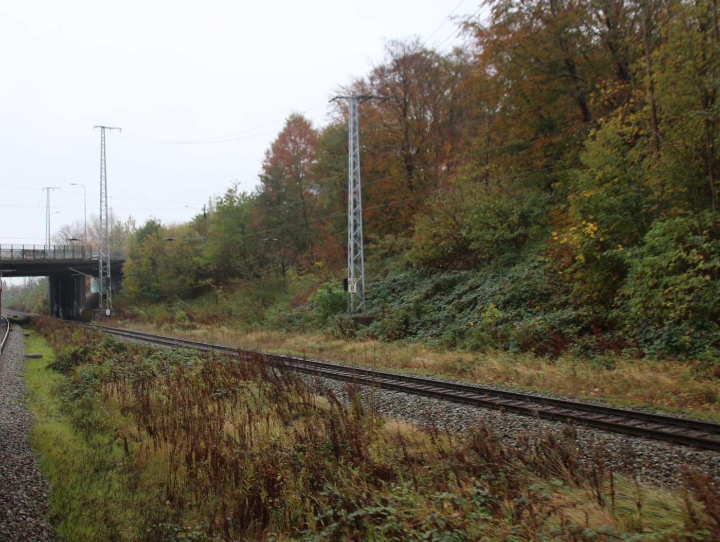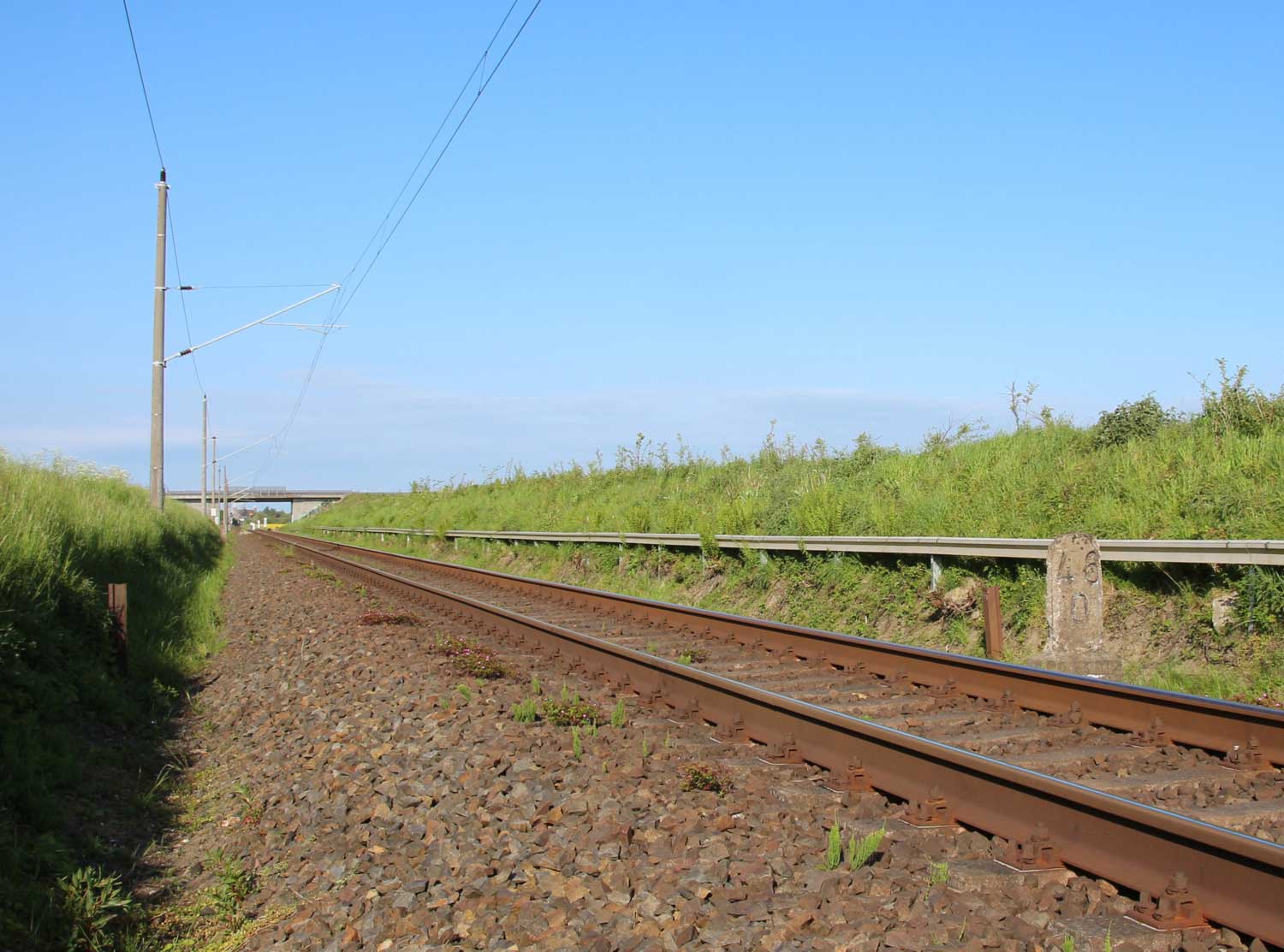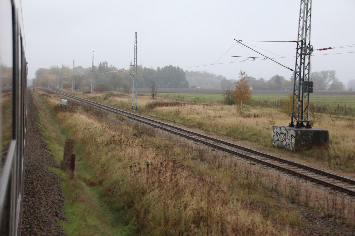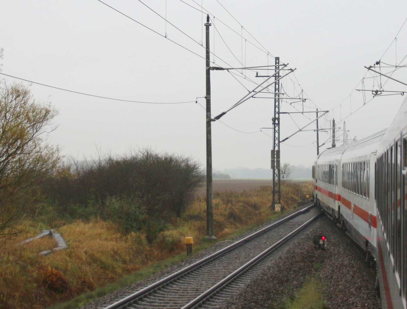 km 70,8 zwischen Rostock-Kassebohm und Abzw Rostock Warnowbrücke West - Blick Richtung Stralsund
