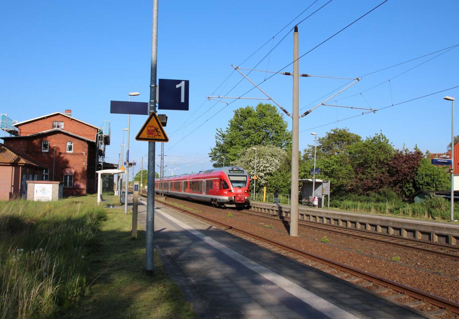 km 1,3 (Stein links) gehört zur Strecke Abzw Riekdahl, W 1 km 0,87 - Rostock Seehafen Nord km 9,228 (6443)