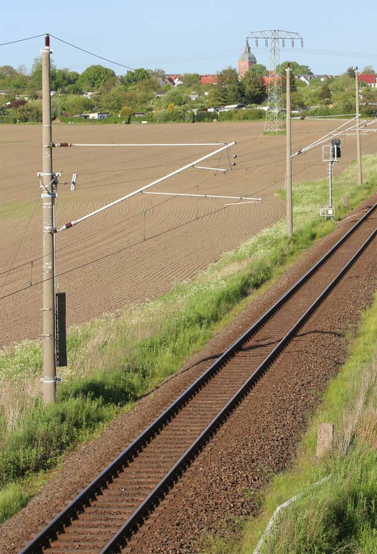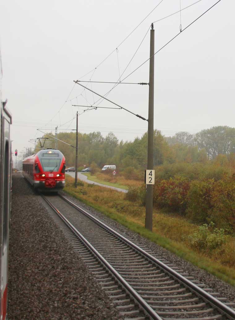 km 70,8 zwischen Rostock-Kassebohm und Abzw Rostock Warnowbrücke West - Blick Richtung Rostock