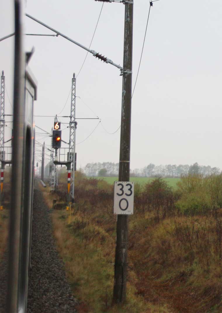 km 0,30 der Strecke (Stralsund 0,0) - Abzw Anschluss Nebenbahn 0,95 - Tribsees 36,22 | ||