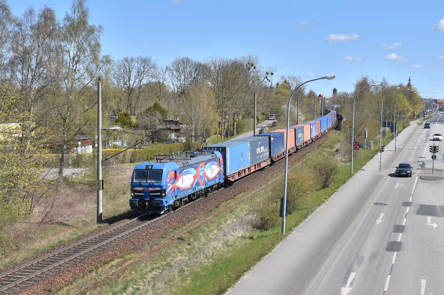 Im Hintergrund links die Strecke Abzw Riekdahl, W 1 km 0,87 - Rostock Seehafen Nord km 9,228 (6443)