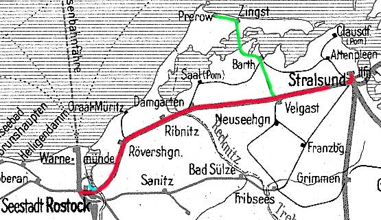 Stralsund | 0,30 | km 222,64 der Strecke Berlin Nordbf -0,02 - Berlin-Schönholz 3,85 - Löwenberg Reichsb (Mark) 44,25 - Neustrelitz Reichsb 98,53 - Neubrandenburg 133,73 - Stralsund 222,64 - Saßnitz 272,72 - Saßnitz Hafen 274,46 |