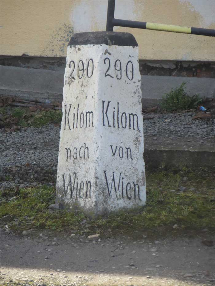 Streckenverzweigung mit weiterlaufender Kilometrierung Wien Nord (Wien Praterstern) Richtung Krakau Hbf