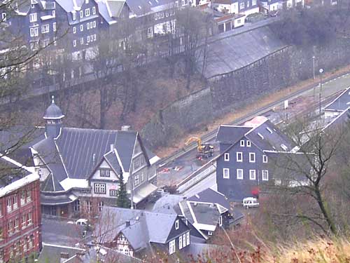 Blick zurück von oben auf den Bahnhof Lauscha |