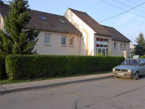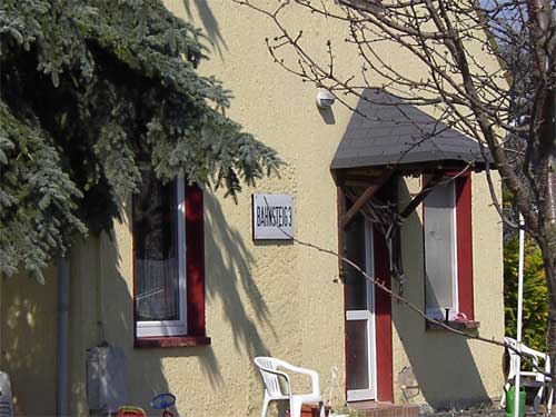 Thamsbrück Dieses Haus steht jetzt mitten auf dem ehemeligen Bahndamm (Oktober 2005) |