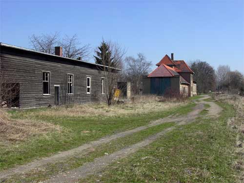 Blick Ri Bf Thamsbrück Rechts die ehemalige Konservenfabrik (Oktober 2005) |