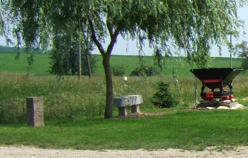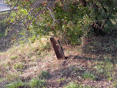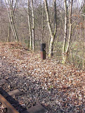 Stahlschwelle als Kilometerstein kurz vor der gesprengten Bruchstedter Brücke (April 2005) |