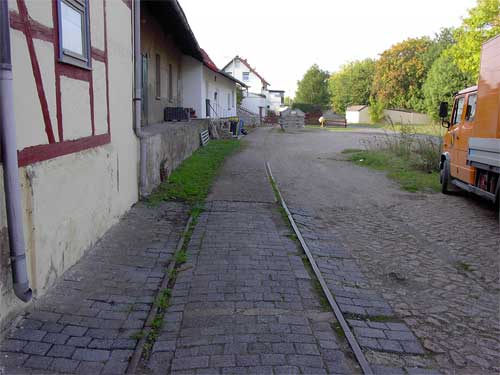 Anschlussgleis der ehemaligen Konservenfabrik (Oktober 2005) |