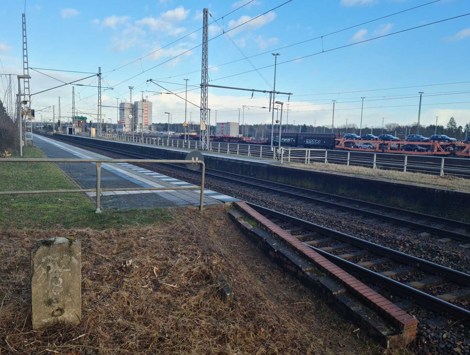 km 24,2 (Tafel links am Oberleitungsmast) in Bergholz (b Potsdam)