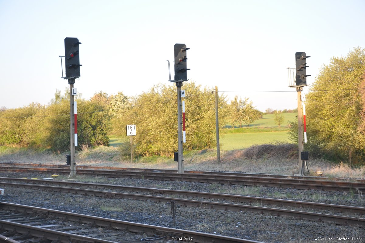 Blankenheim Trennungsbf | 188,06 | km 46,59 der Strecke Halle (Saale) Hbf 0,01 - Sangerhausen 59,22 - Nordhausen 97,07 - Eichenberg 170,48 - Hann. Münden 193,54 |