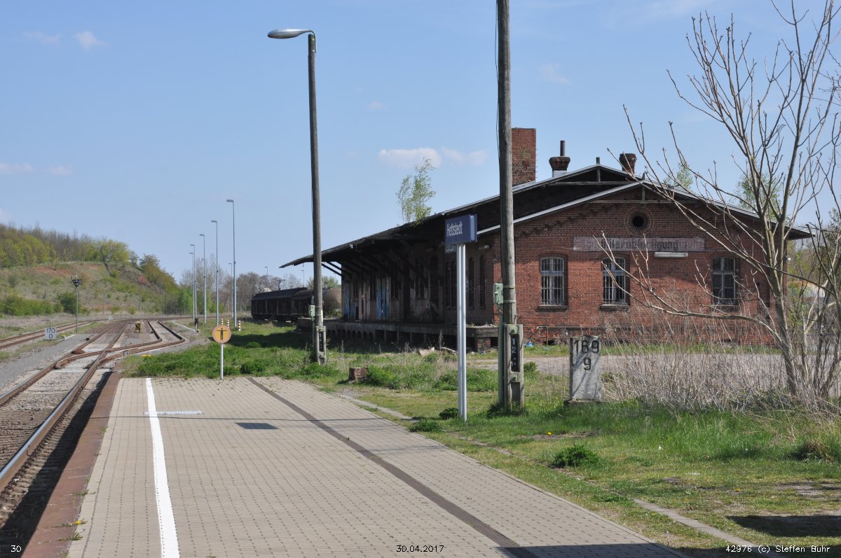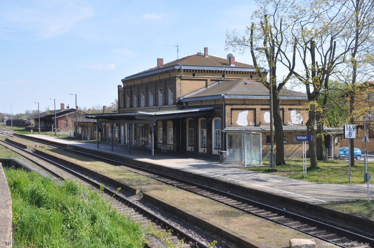 Hettstedt | 169,84 | km 44,6 der Strecke Halle (Saale) Klaustor 0,0 - Gerbstedt 36,1 - Hettstedt 44,6 [Halle-Hettstedter Eisenbahn-Gesellschaft (HHE)] |