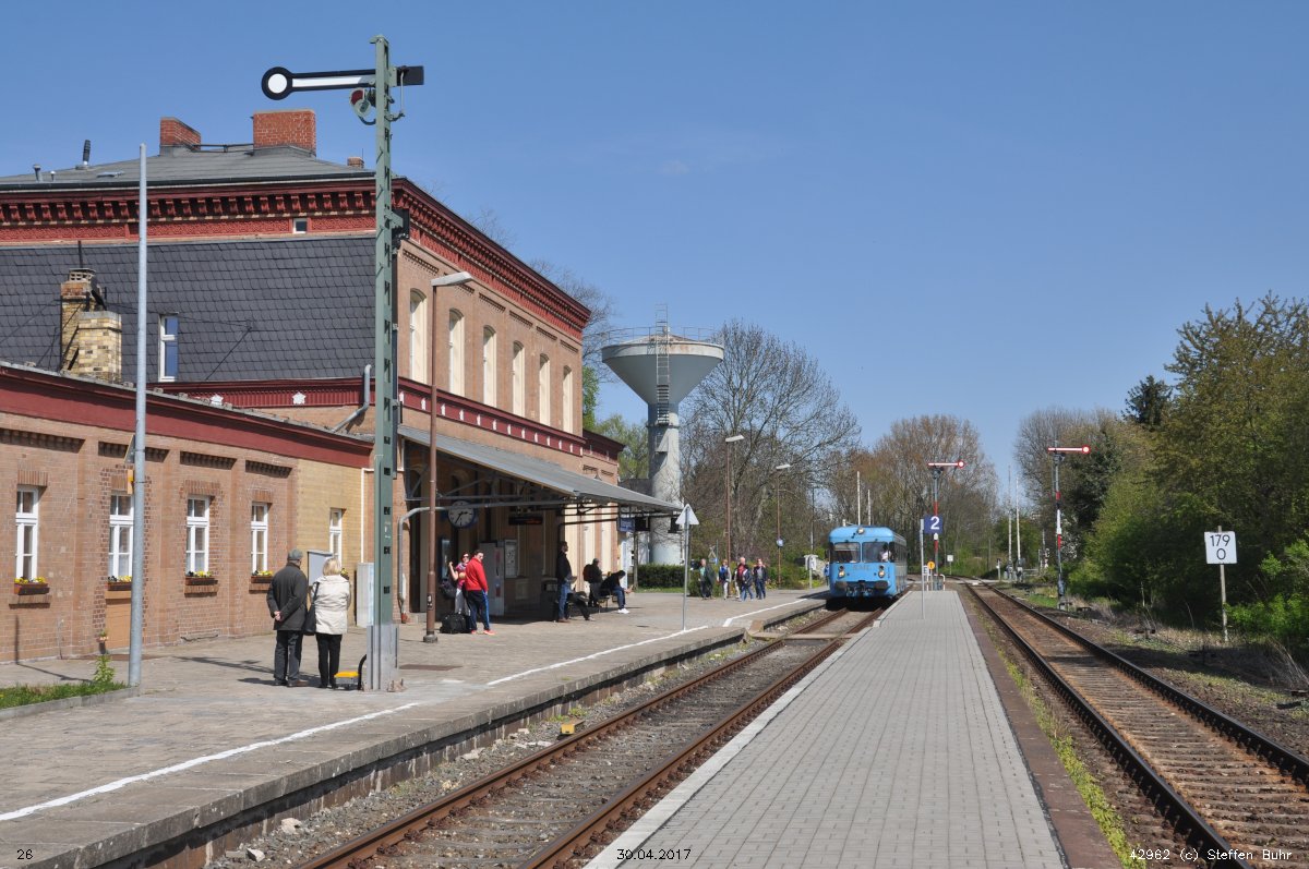 Belzig | 65,23 | km 21,6 der Strecke Treuenbrietzen 0,0 - Belzig 21,6 - Brandenburg Neustadt 56,5 - Rathenow 90,25 - Neustadt (Dosse) 125,6 (Spitzkehre in Belzig) |