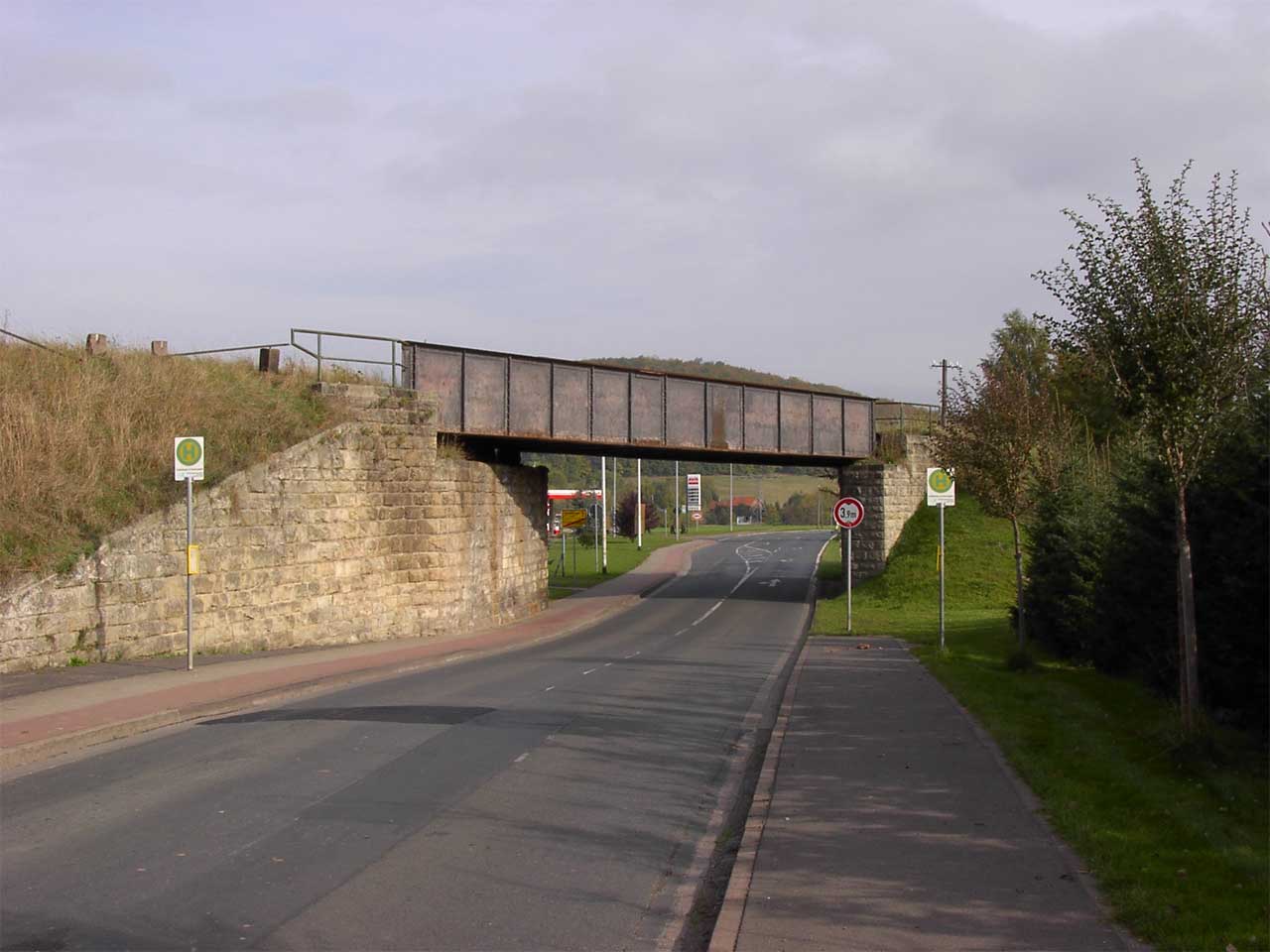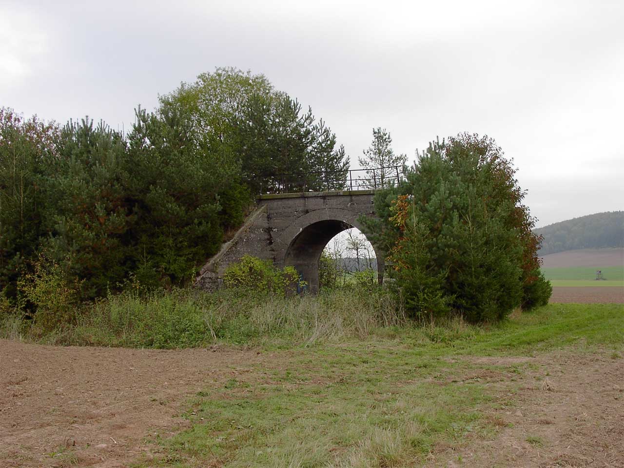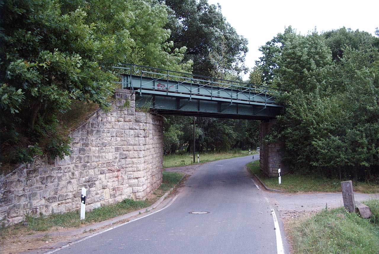 Brücke über das ehemalige Gleisbett zwischen Tunnel und Bf Weißenborn-Lüderode