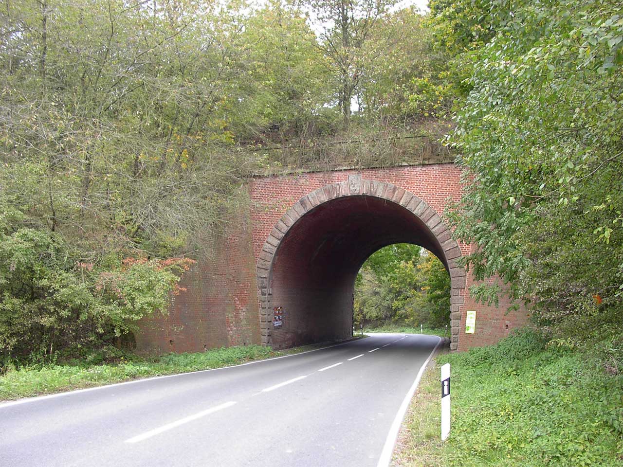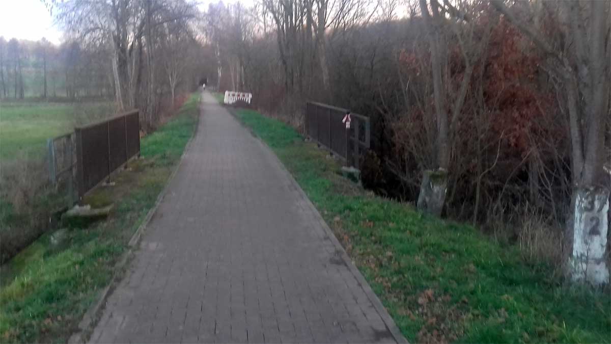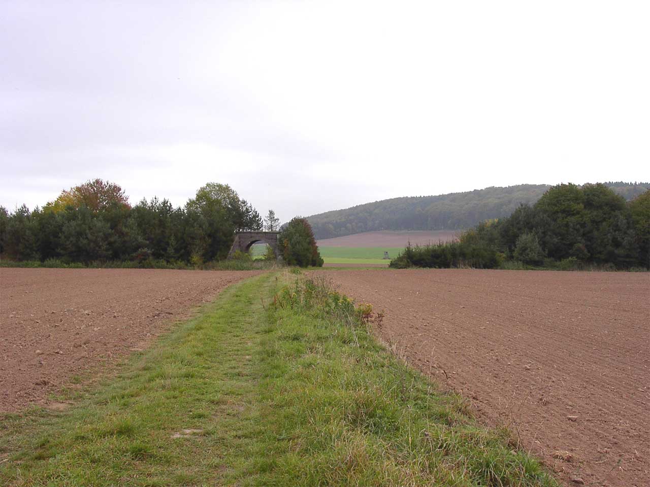 Brücke über das ehemalige Gleisbett zwischen Tunnel und Bf Weißenborn-Lüderode