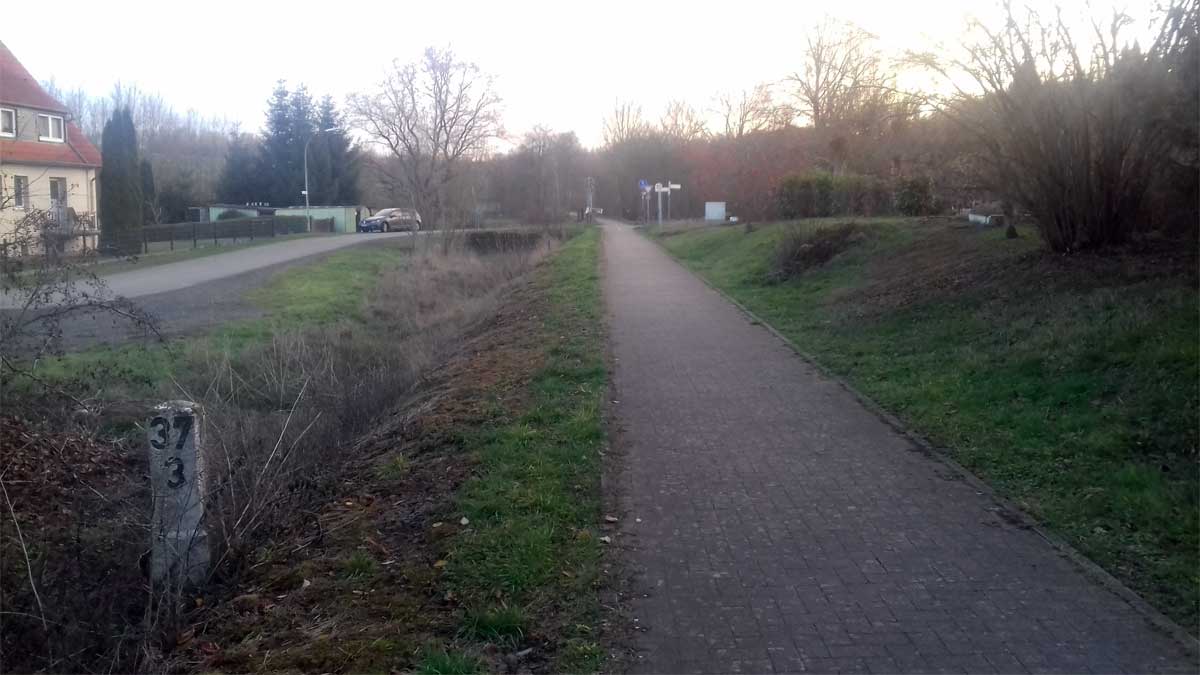 bei km 1,0 - ehemalige Brücke über die Strecke Halle (Saale) Hbf - Hann Münden