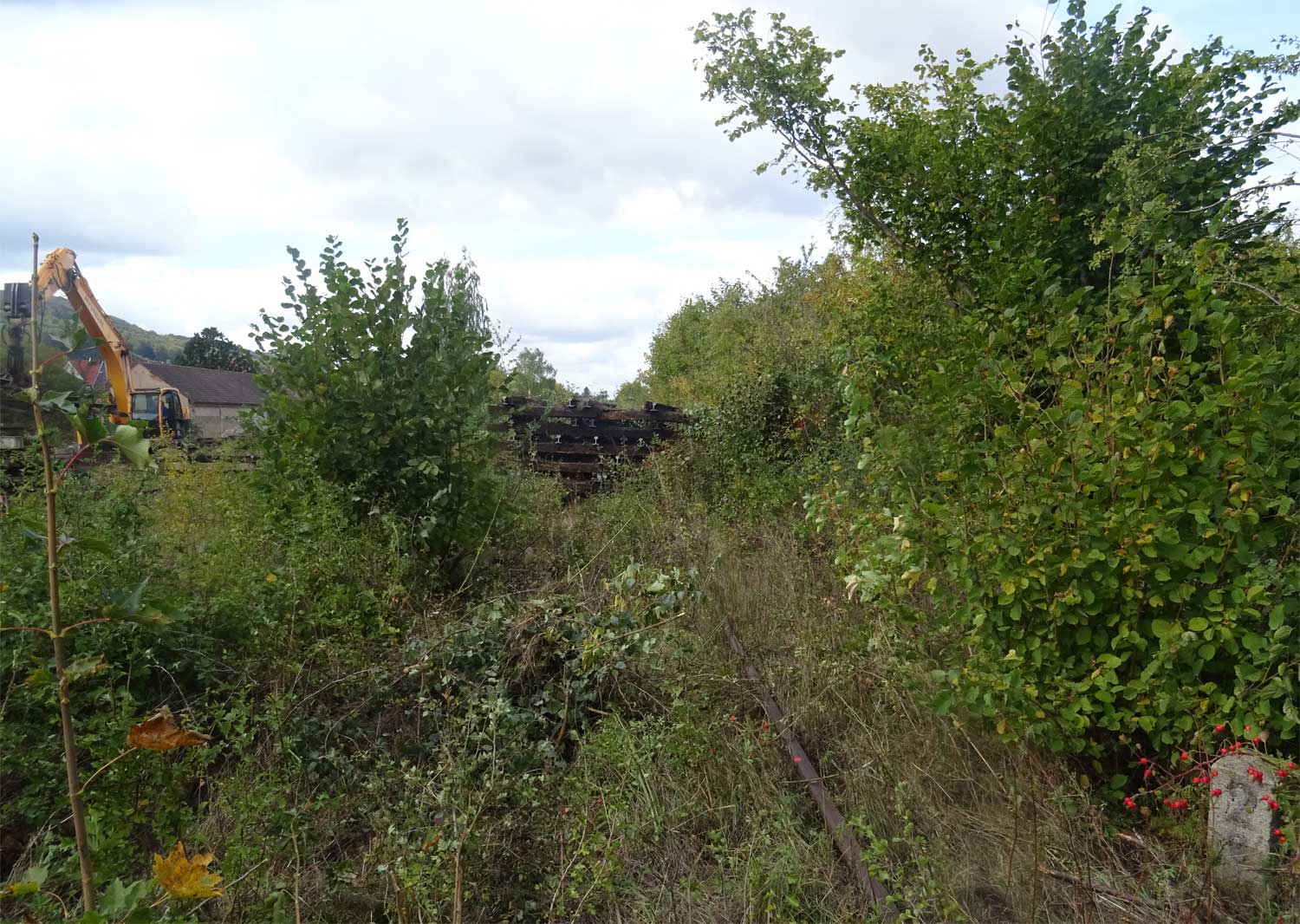 Die Brücke ist wohl zu klein für die großen Feldfahrzeug, so dass ein Stück des Bahndamms entfernt wurde.