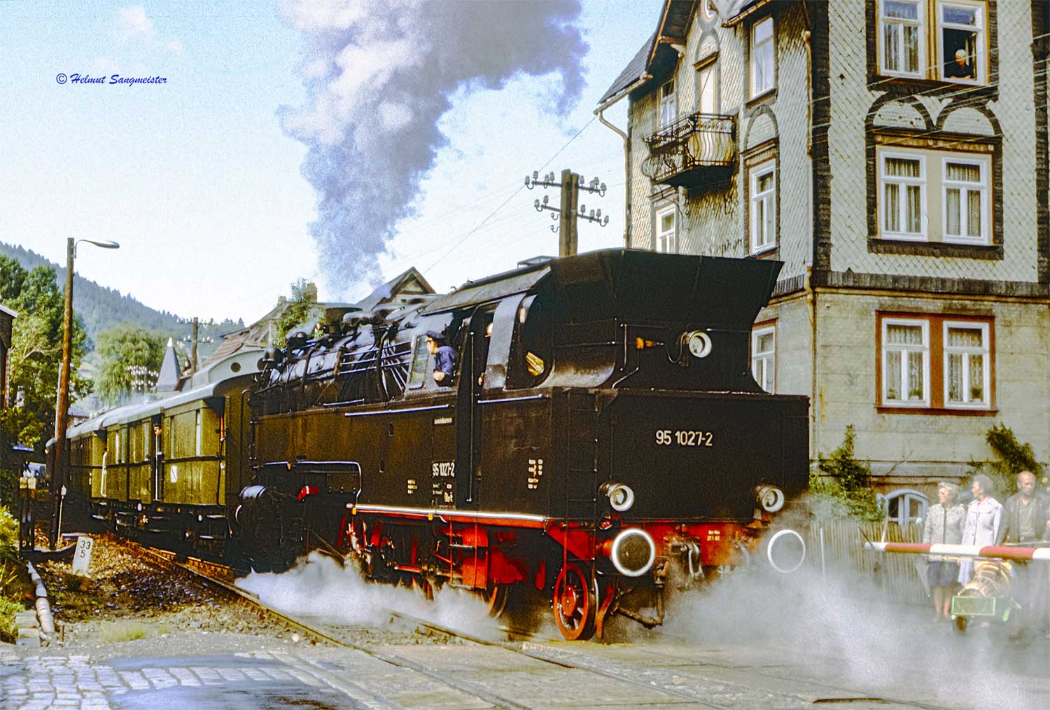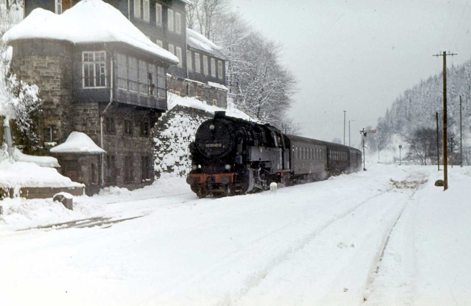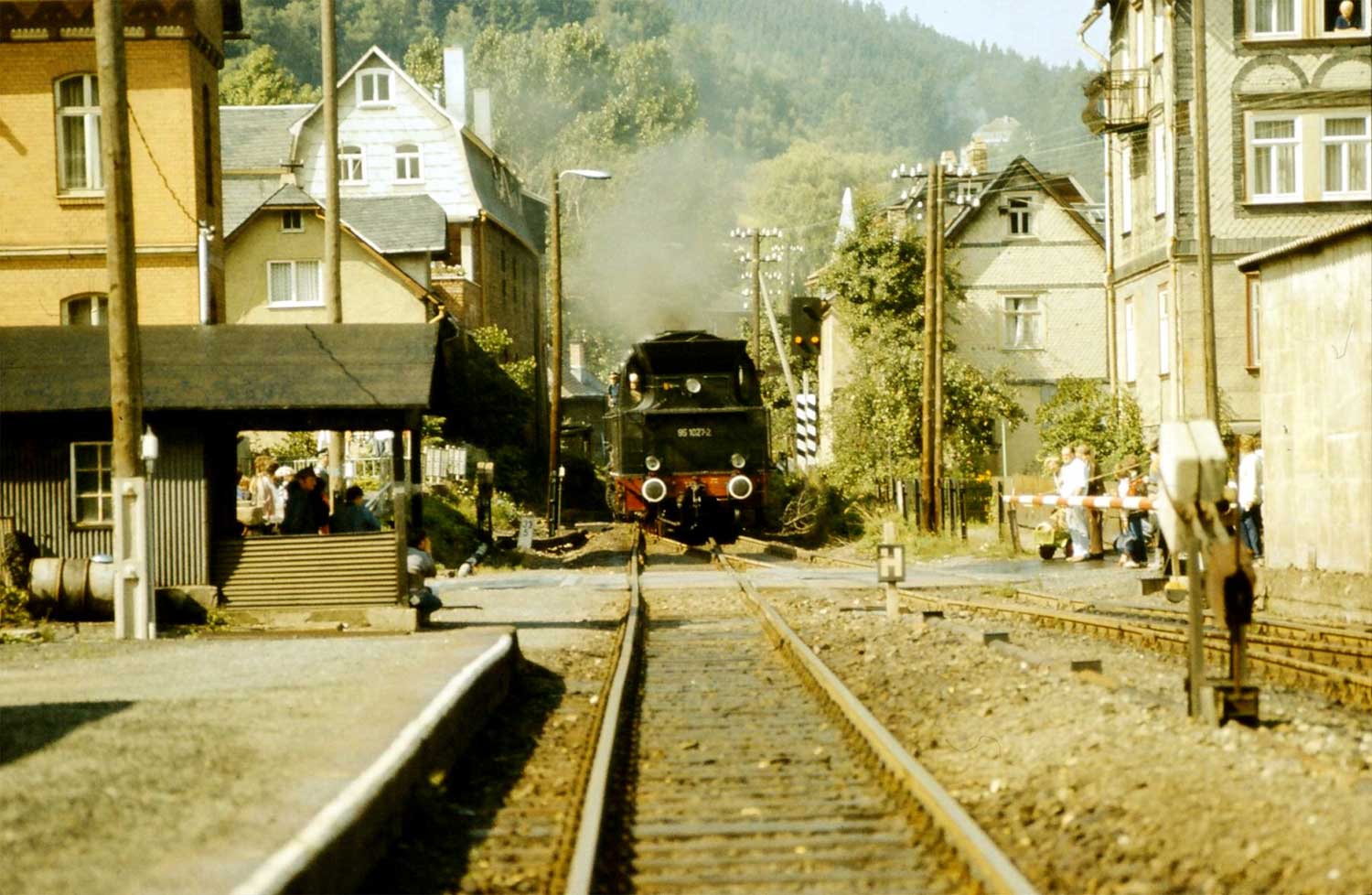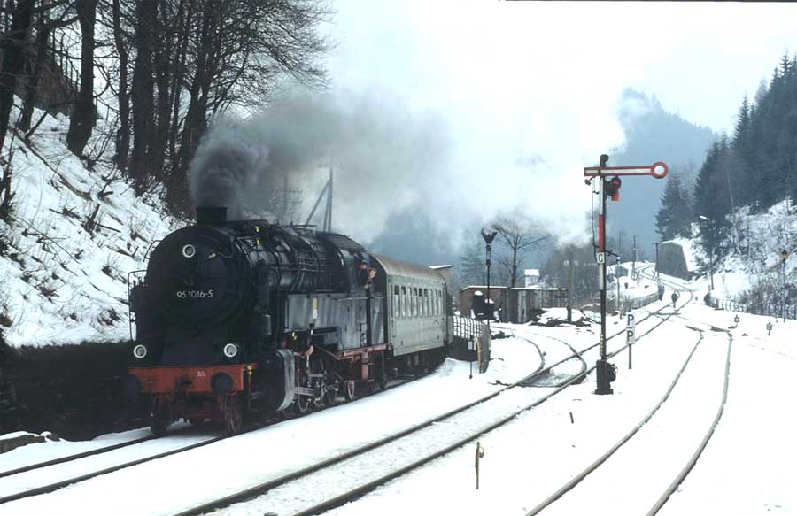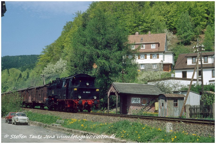 95 1016 bei der Einfahrt in den Bf Lauscha aus Ri Sonneberg