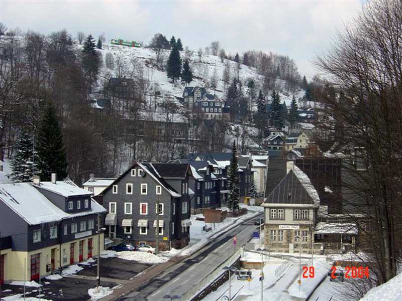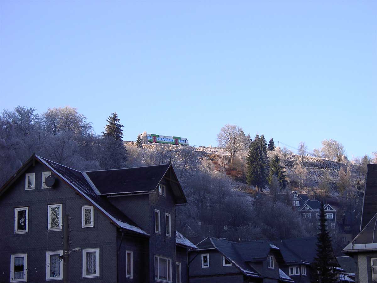 Auf seiner Fahrt vom Bahnhof Lauscha (Thür) auf die Höhe hat der