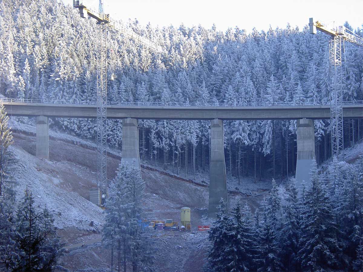 Sprengung des Viaduktes "Nasse Telle" auf dem Streckenabschnitt Lauscha-Ernstthal am 14.12.2001