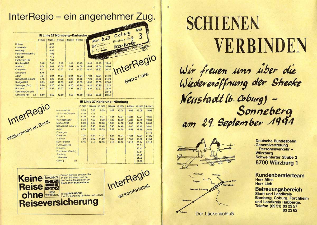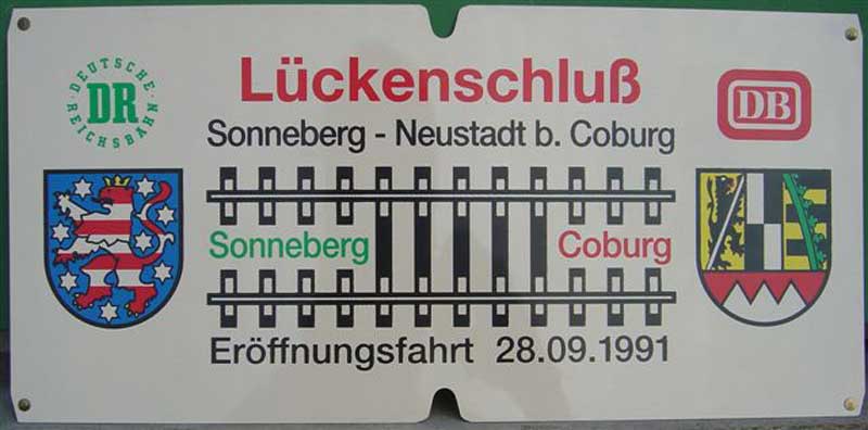 | Lückenschluss Neustadt b. Coburg - Sonneberg (Thür)Hbf | 29.09.1991 |