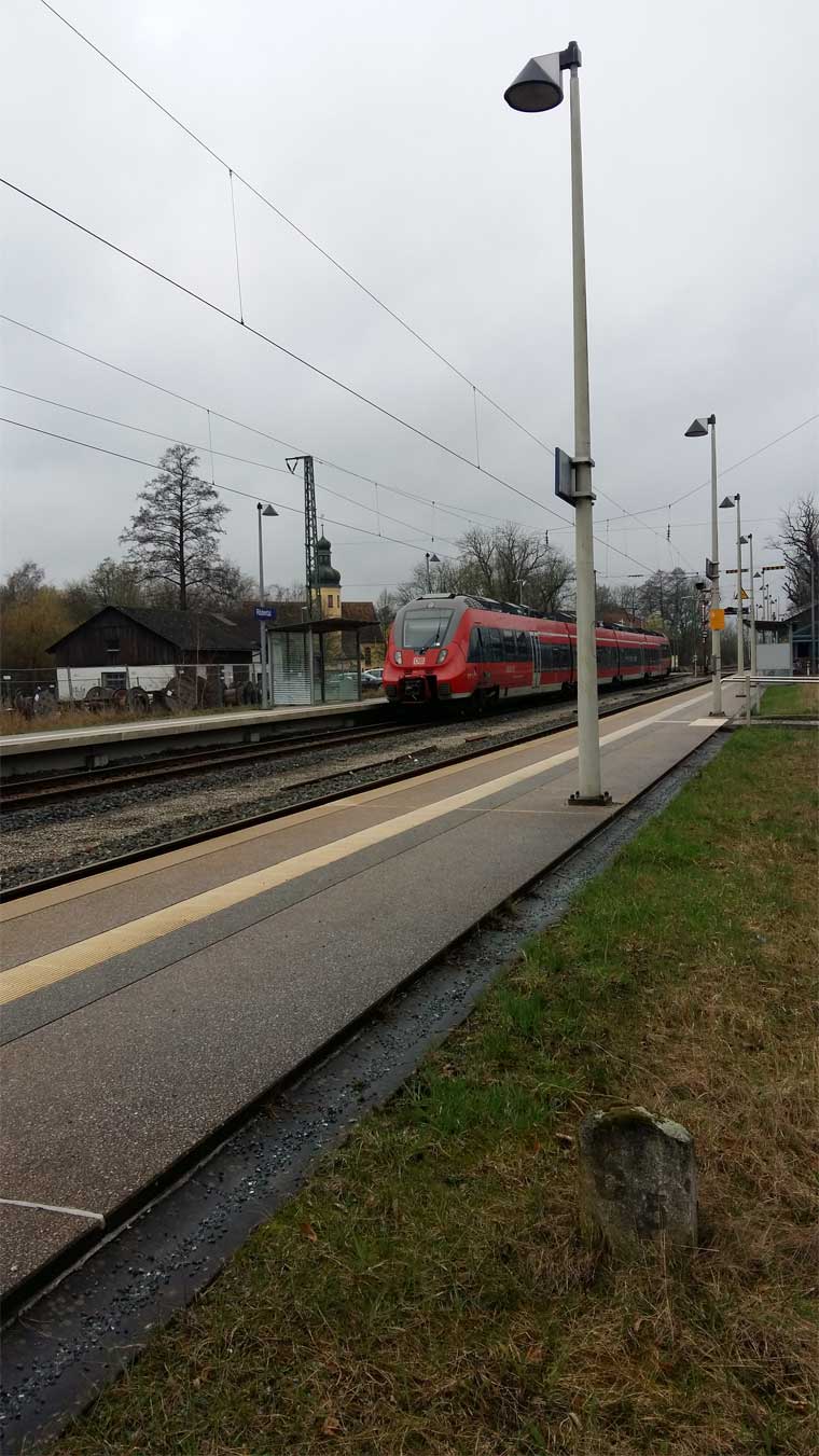 Hier sieht man sowohl die Bahn oben, als auch die Gleise unten im Bahnhof.