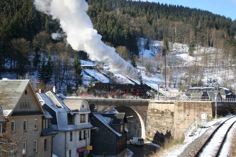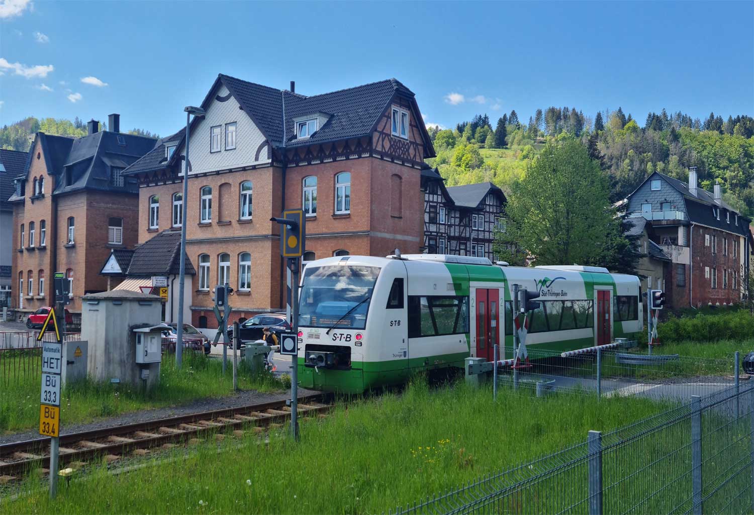 Gleicher Standort - Im Hintergrund fährt die STB Richtung Sonneberg Hbf