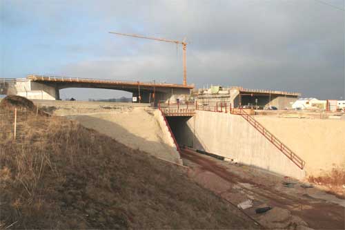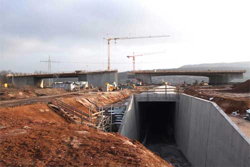 Neubaustrecke, die westliche Brücke die Autobahn A73. Zwischen Neubaustrecke