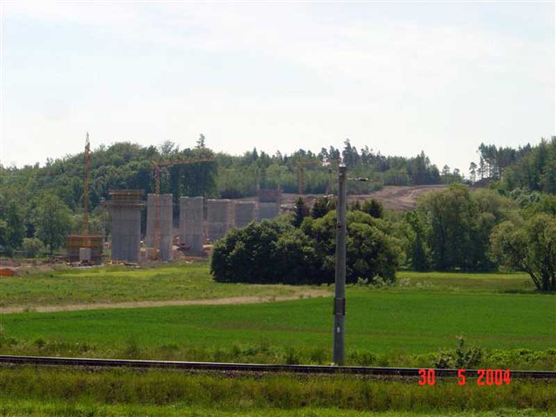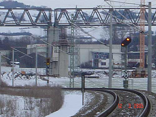 Die Brückenpfeiler im Hintergrund gehören zur Autobahnbrücke der A73 (Foto: Dirk Ammon, März 2005) |