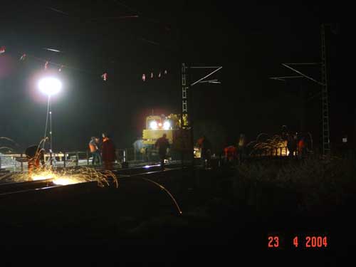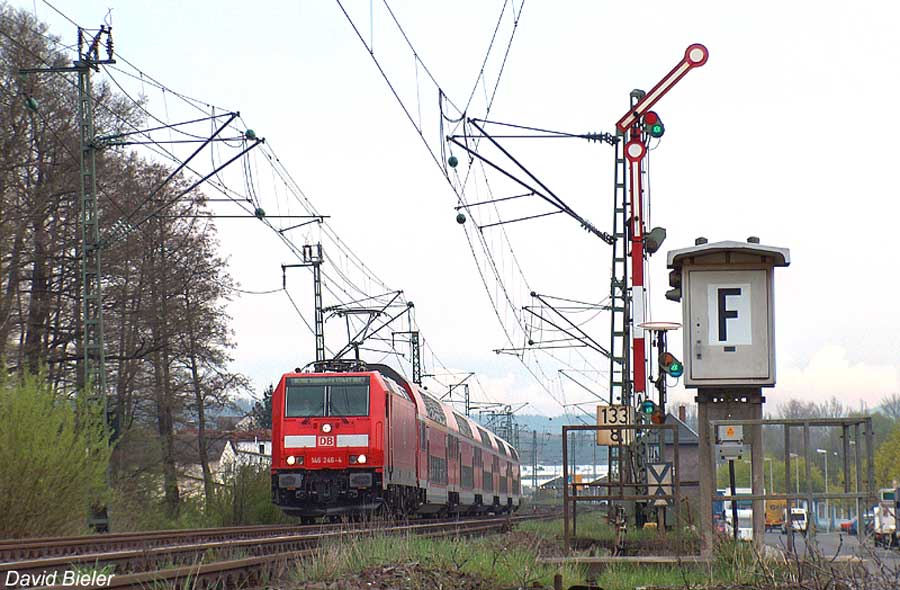 Man beachte auch die dreifeldrige Streckentrennung in der Fahrleitung.