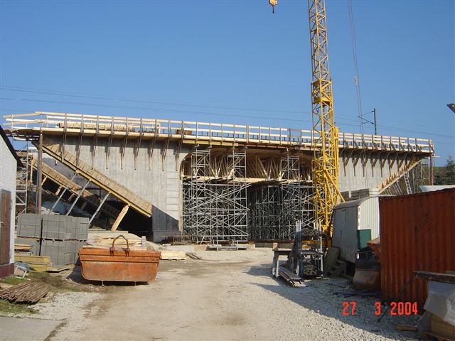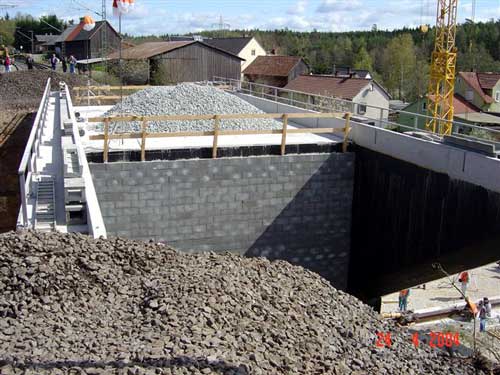 Im Hintergrund die Reste der Grundmauern des ehemaligen Stellwerkes