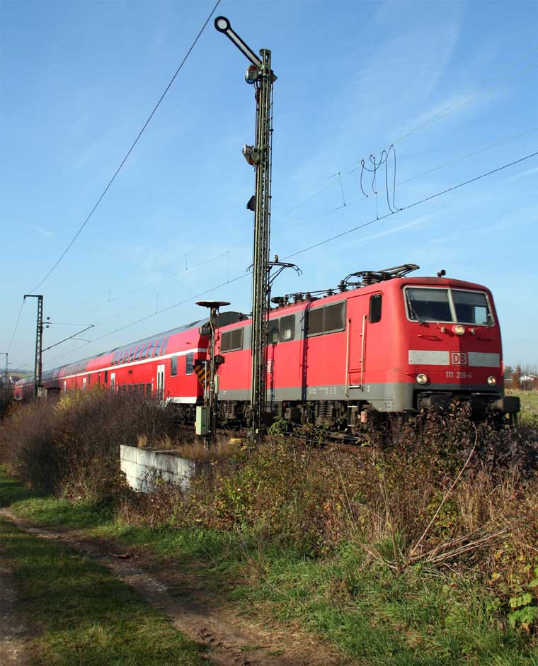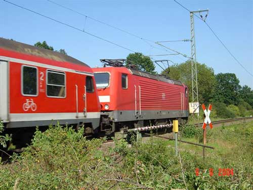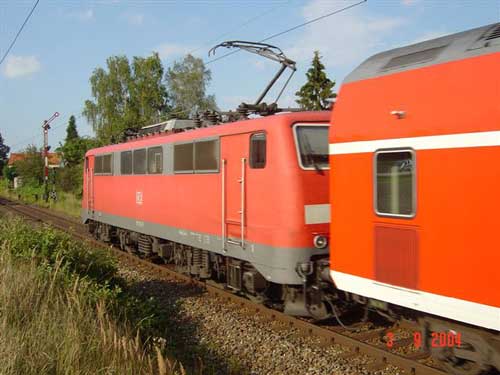 Das besondere am Bild ist, dass die Lok in Fahrtrichtung vor dem Steuerwagen läuft (Steuerwagen evtl. defekt).