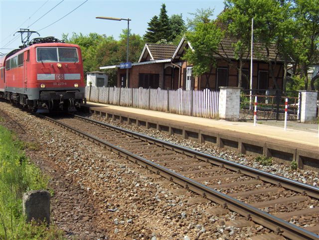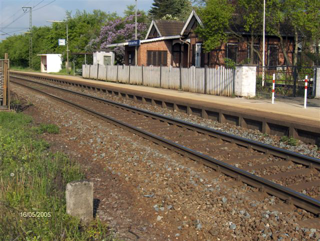 Hinter dem Bahnhofsgebäude befindet sich die ehemalige Strecke nach Rossach