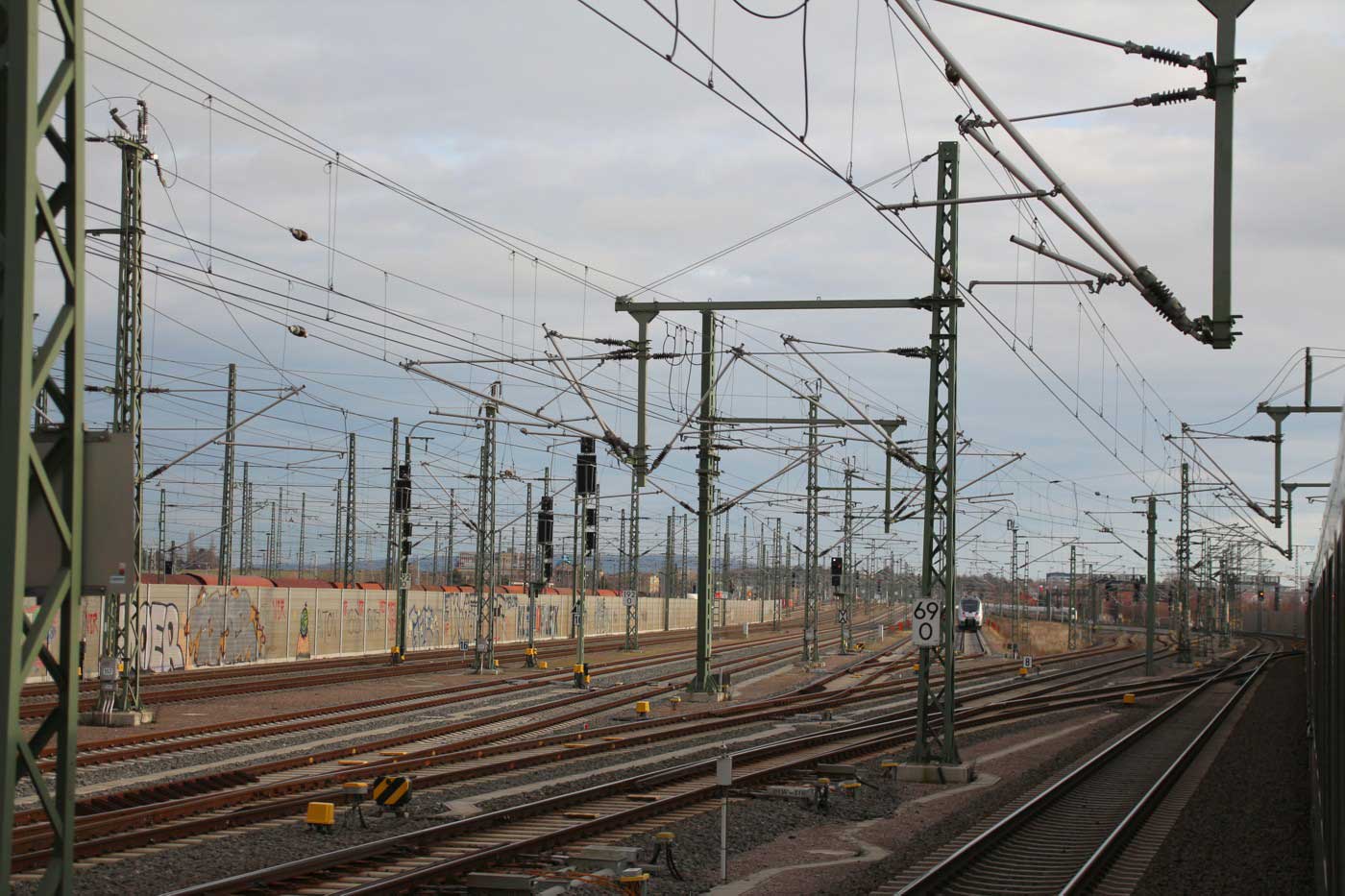 km 308,4 zwischen Leipzig Messe und Leipzig Hbf im Bereich Leipzig Nordkopf - Blick Richtung Erfurt Hbf - Nürnberg Hbf