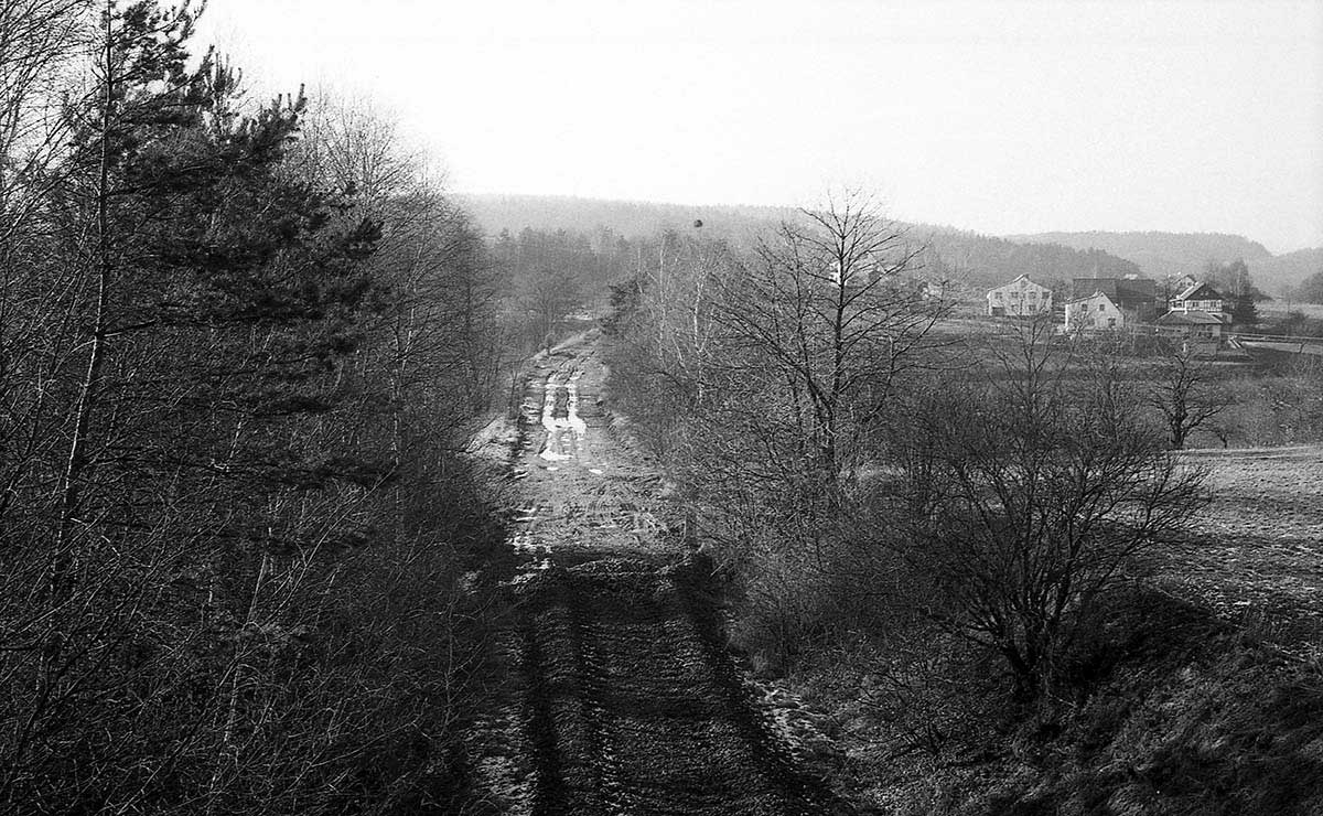 Links das Planum der ehemaligen Strecke Förtha (Kr Eisenach) - Gerstungen,