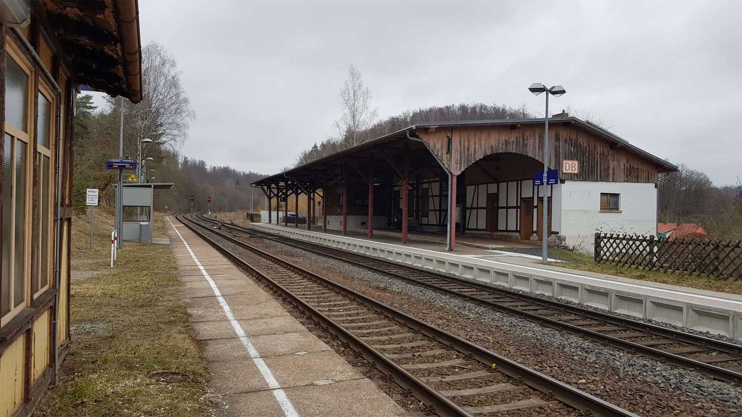 rechts das Gleis der Strecle Eisenach - Lichtenfels.